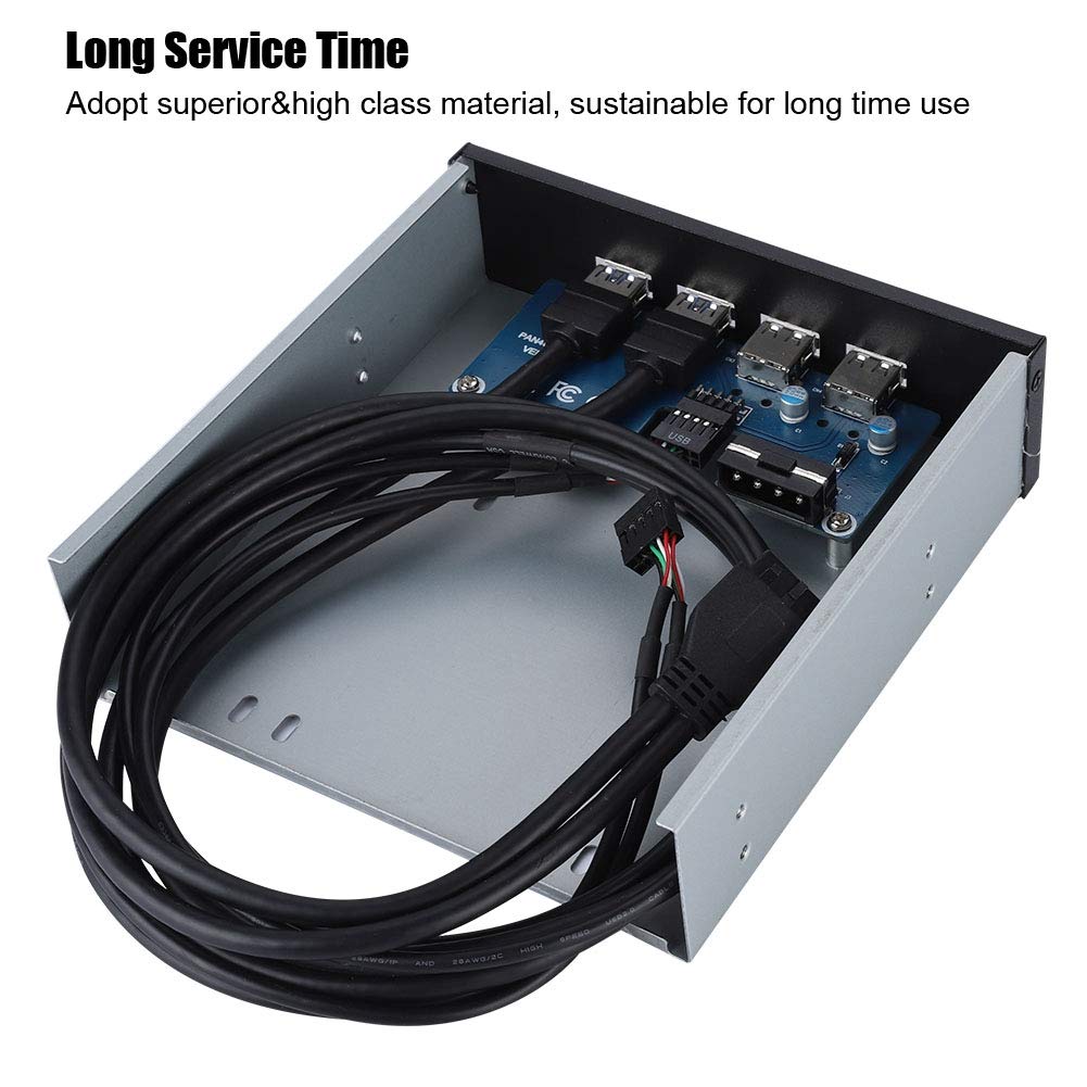 Ashata 5.25'' Front Panel,4 Usb Port Optical Drive Front Panel,Multifunction 5.25 Inch 19 Pin/9Pin To Usb 3.0 Usb 2.0 4 Port Met