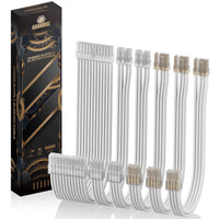 Q: What is included in the AsiaHorse PSU Cable Extension Kit?A: The AsiaHorse PSU Cable Extension Kit includes a 24-pin ATX motherboard power cable, two 8-pin (4+4) EPS power cables, and three 8-pin (6+2) PCI-e GPU power cables, providing all necessary cables to complete your PC build.