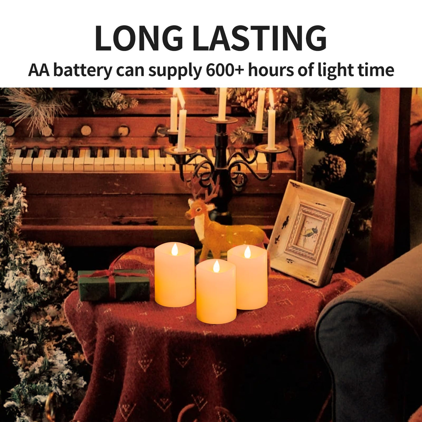 Q: What occasions are these flameless candles suitable for?A: These versatile 3x4-inch flameless candles are perfect for various occasions such as birthdays, Christmas, weddings, parties, and home decoration, providing a cozy ambiance wherever they are used.