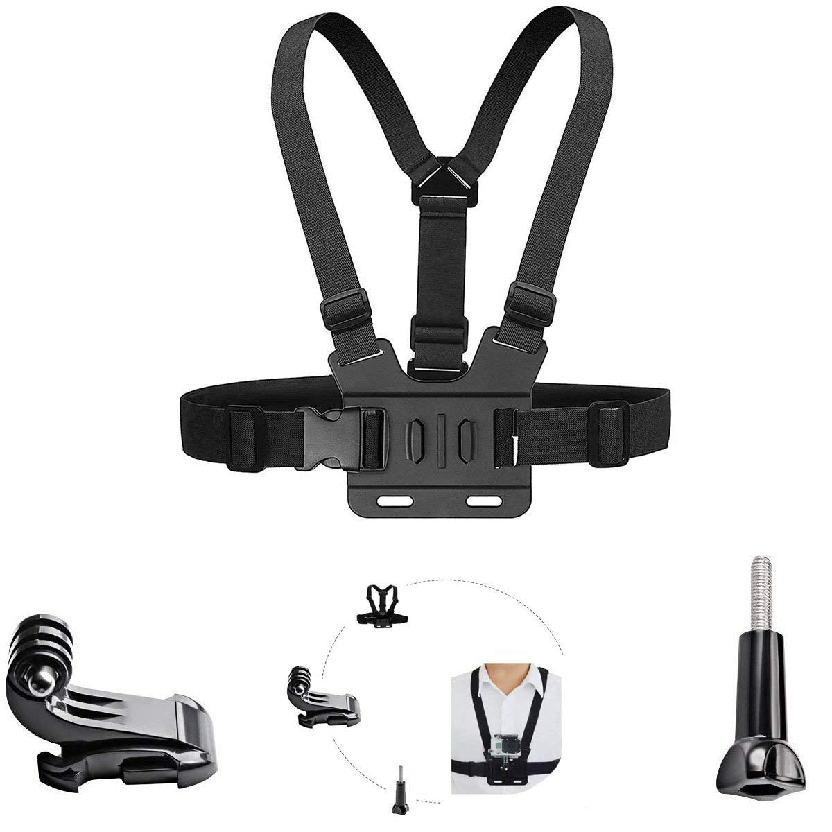 Asocea Chest Mount Strap Harness Adjustable Chest Belt With J Hook Compatible With 11 10 9 8 7 6/Akaso Ek7000/Brave 4/V50 Elite/