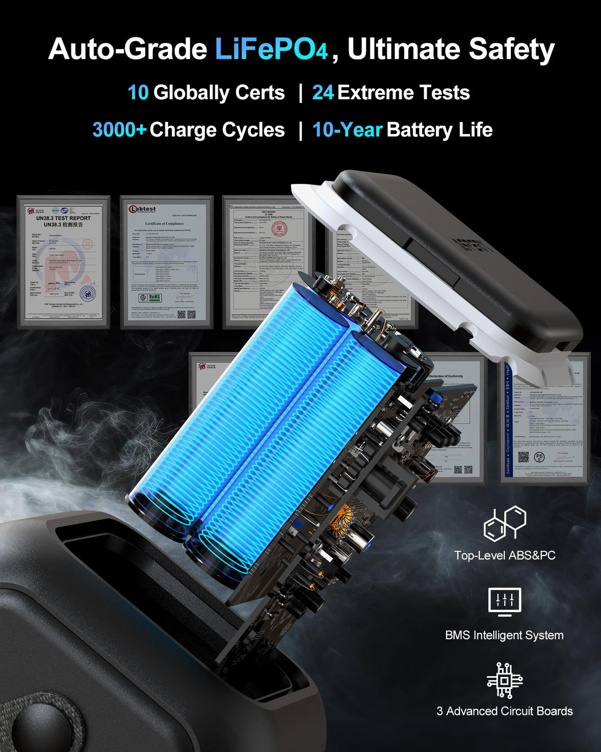 Asperx Portable Power Station, 192Wh Lifepo4 Battery With 200W Output, Dual 140W Pd3.1 Fast Charging, Smart Display, 60,000Mah D