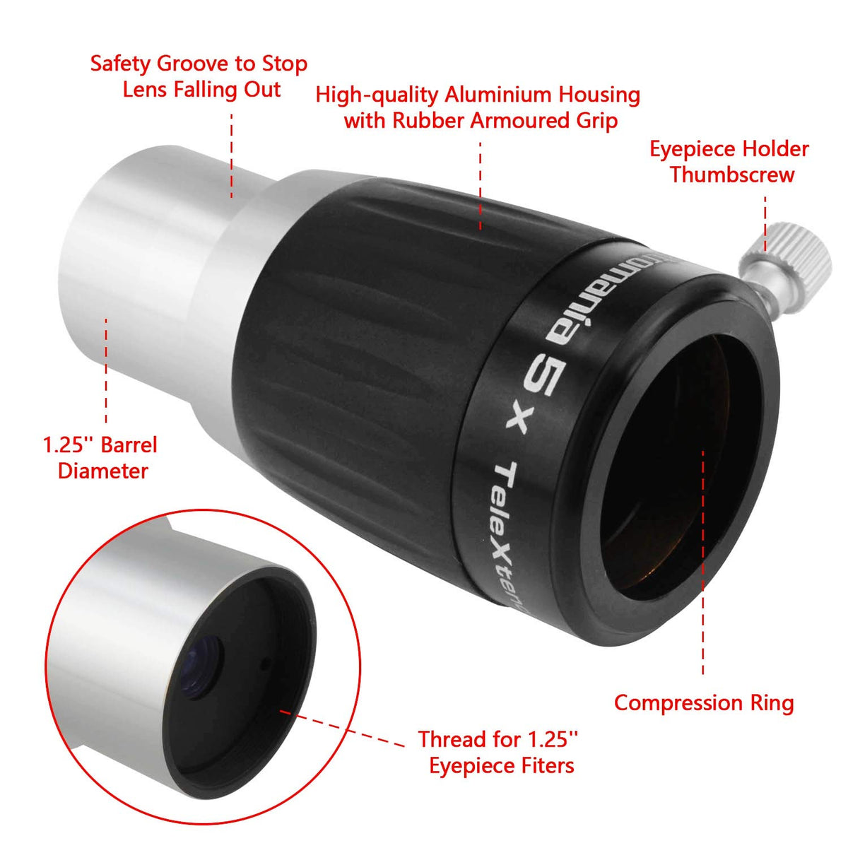 Astromania 1.25'' 4 Elements 5X Telextender Premium Barlow Lens Apochromatic Barlow Lens Giving An Excellent Image