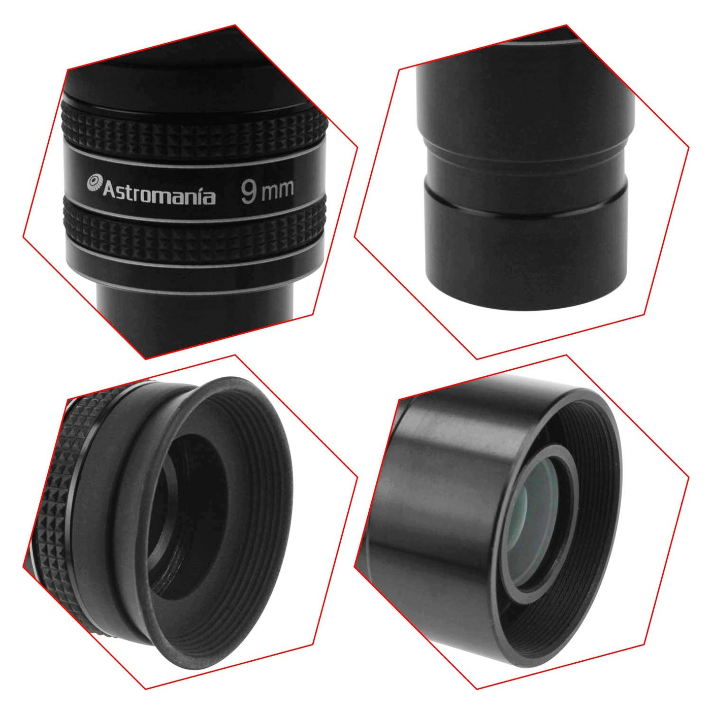 Q: What makes the Astromania eyepiece a good choice for beginners?A: The Astromania 1.25" 9mm eyepiece is designed to be user-friendly with excellent optical quality and reduced lateral chromatic aberration. Its affordability, combined with high contrast and clarity, makes it a great entry-level option for beginners in astronomy.