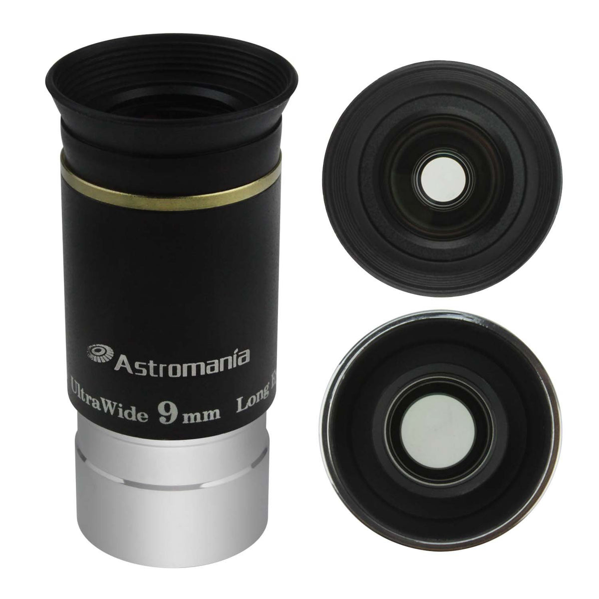 Q: What is the eye relief of the Astromania 9mm eyepiece?A: The Astromania 9mm eyepiece offers a generous 15mm eye relief, providing a comfortable viewing distance for astronomers, especially those who wear glasses.