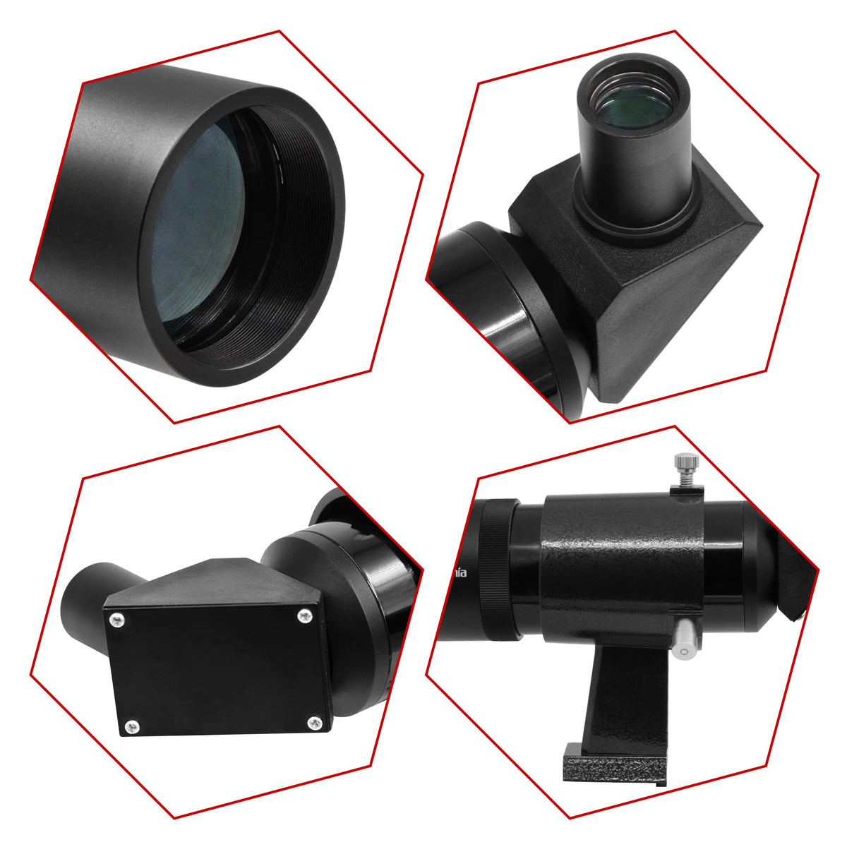 Q: How does the 90-degree viewing angle enhance the user experience?A: The 90-degree viewing angle of the Astromania 9x50 Finder Scope allows for comfortable observation, particularly when viewing objects near the zenith. This ergonomic feature makes it easier to use star maps while maintaining a relaxed neck position.