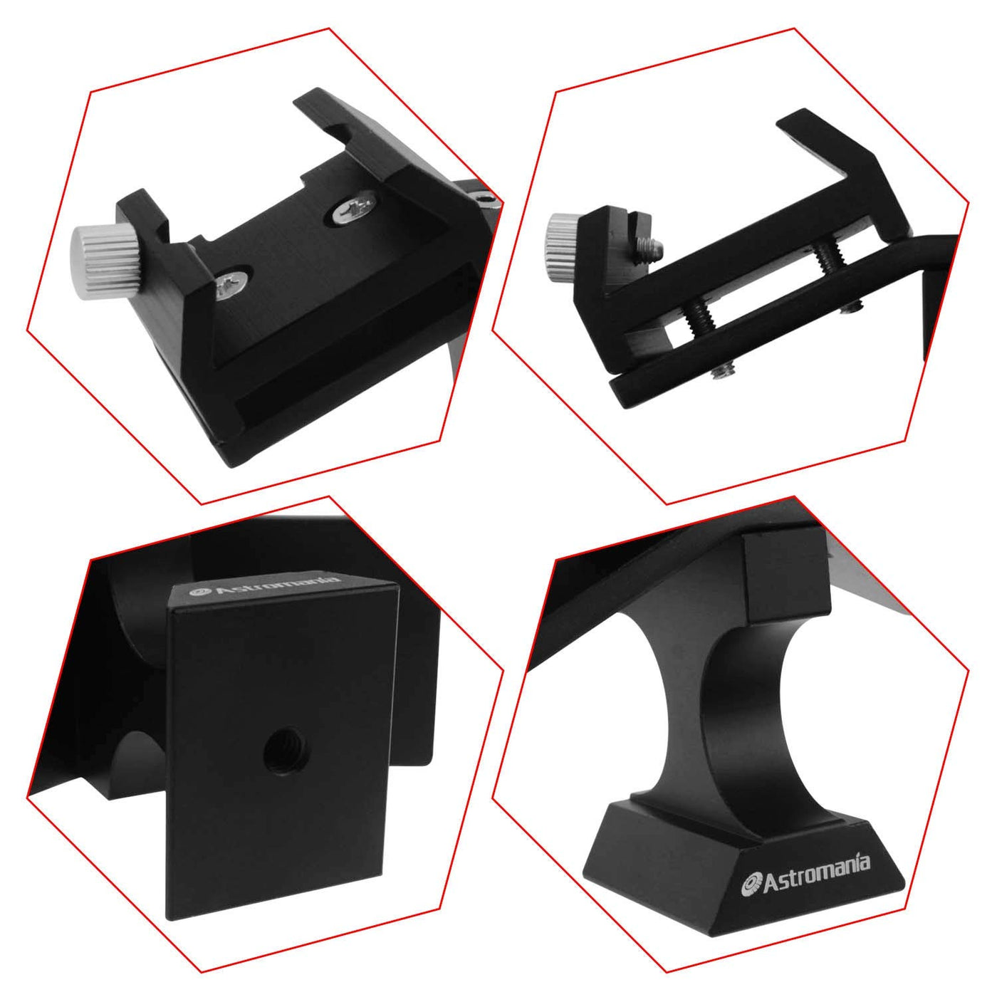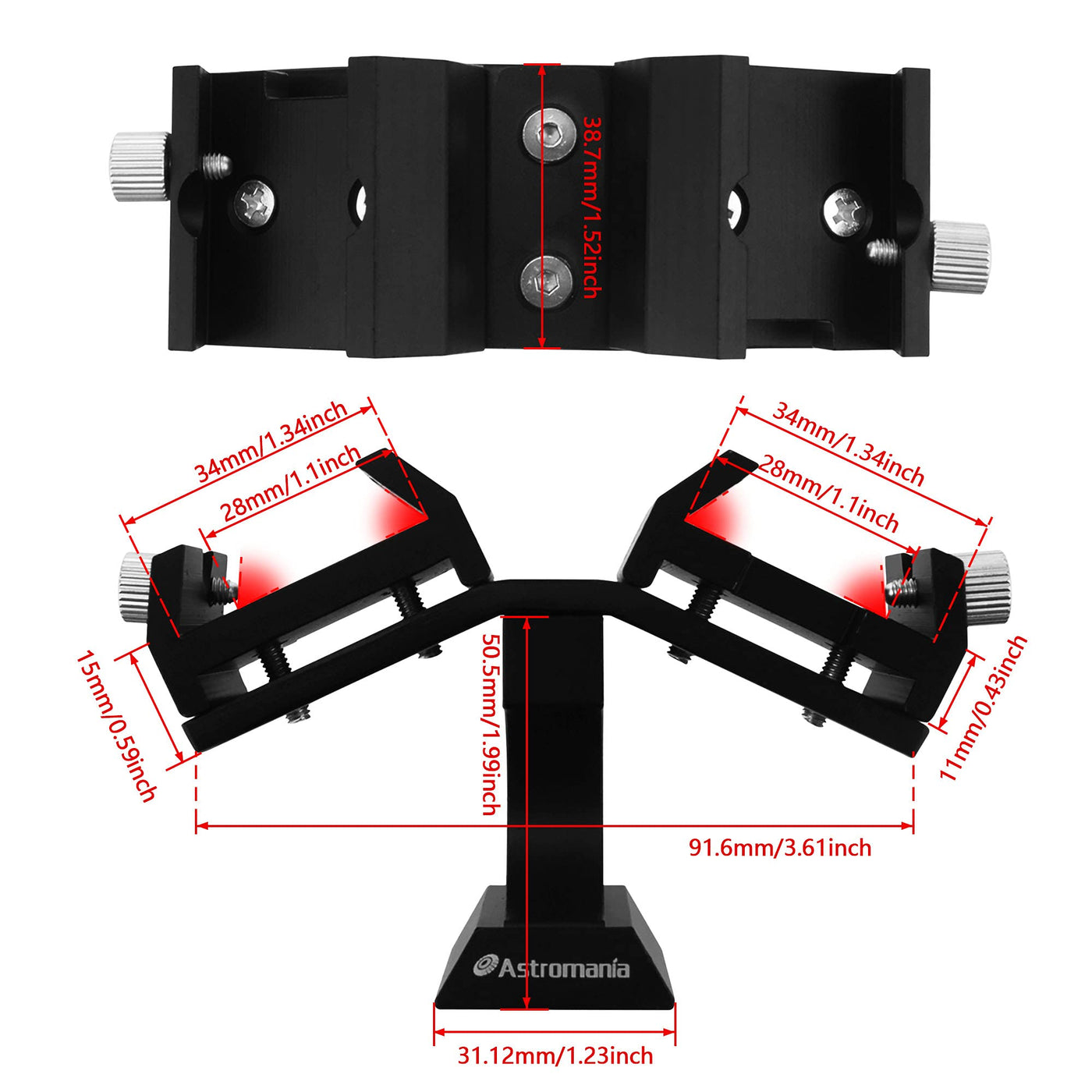 Attach Two Different Aiming Devices To Your Telescope Quickly And Easily With The Finder Scope Mounting Bracket. Many Amateur Astronomers Prefer Using Not One, But Two Finder Devices To Help Aim Their Telescope Accurately. For Instance, Using A Magnified Optical Finder Scope Along With A Non-Magnifying Reflex Sight Is Very Common Thanks To The Different Aiming Benefits Offered By Designs. Our Finder Scope Mounting Bracket Makes It Easy To Two Different Aiming Devices On One Telescope! It'S So Amazing, Isn'T It! Since Most Telescope Optical Tubes Are Equipped With A Single Dovetail Mounting Base For A Finder Scope, Hobbyists Who Wish To Use Two Finder Devices Usually Have To Consider Drilling A Fresh Set Of Holes Into The Telescope Tube (And Possibly Voiding The Telescope'S Warranty) In Order To Securely Attach A Second Aiming Device. Well, Back Away From The Workbench And Leave Those Tools Where They Are, Because The Finder Scope Mounting Bracket Of Astromania Optics Lets You Use Two Different Aiming Devices Without Having To Hassle With Drilling Holes In Your Precious Telescope Tube. Since The Finder Scope Mounting Bracket Features Two Separate Dovetail Mounting Base Platforms On A Single-Stalk Bracket, It Allows Two Aiming Devices To Be Mounted On A Telescope Equipped With A Single Dovetail Base - No Drilling Required!