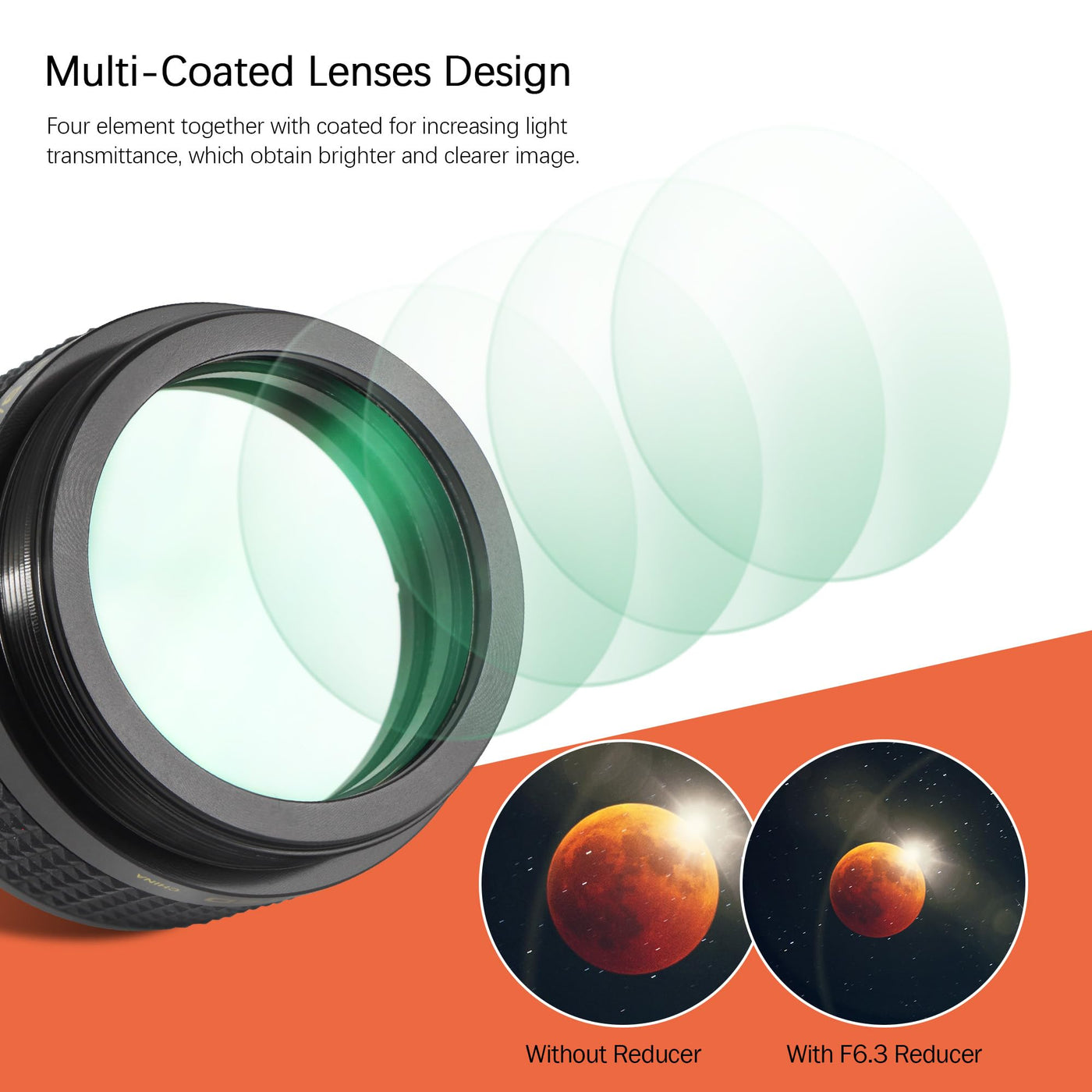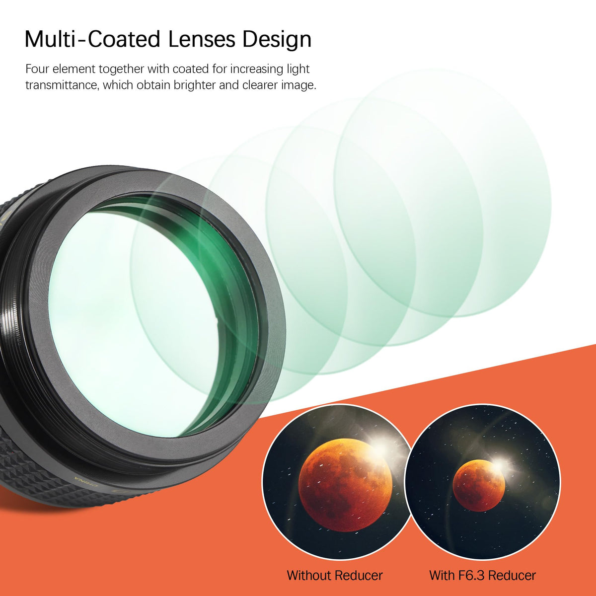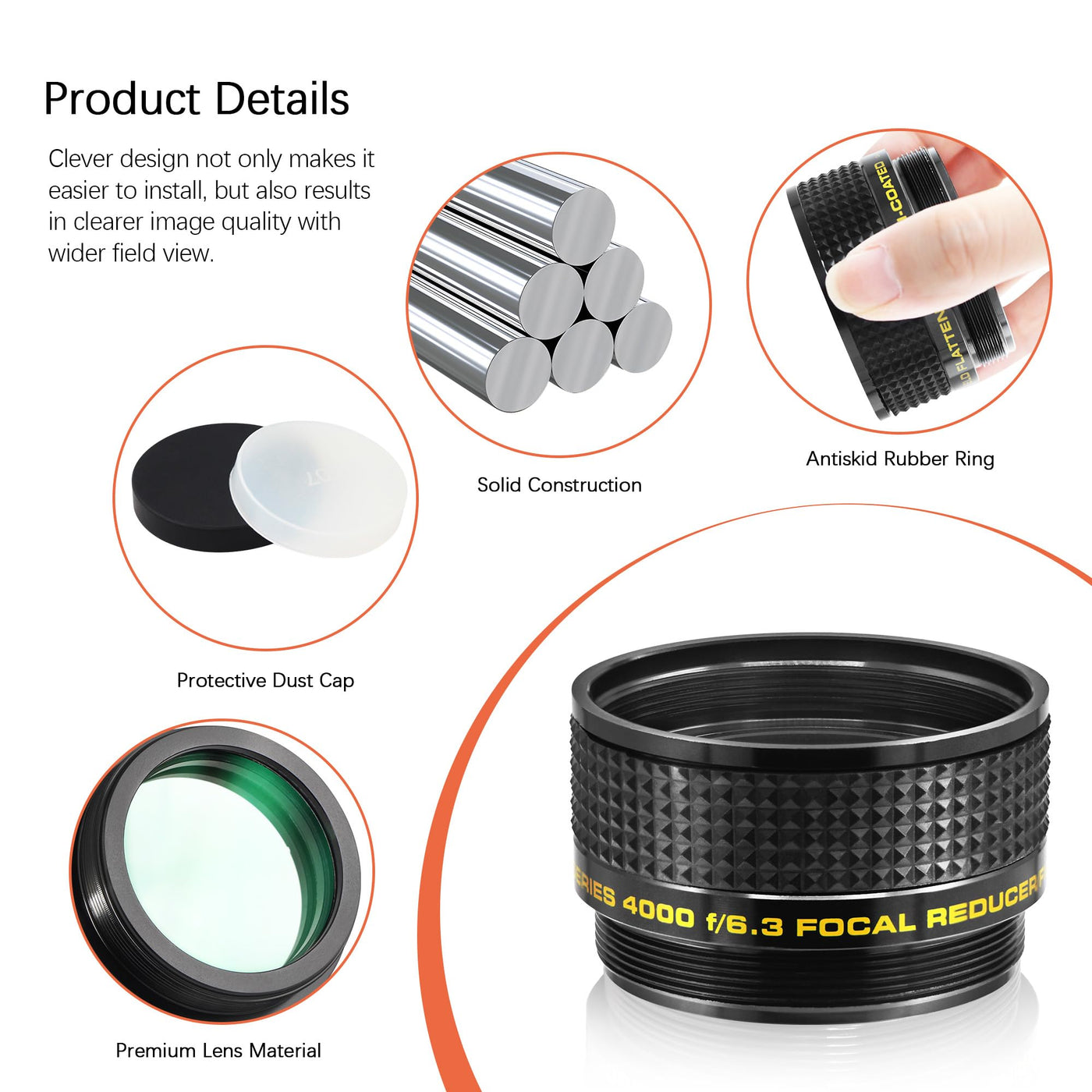 Q: Does using the focal reducer compromise image quality?A: No, the Astromania Focal Reducer is designed to maintain high image quality while providing a wider field of view and dual focal ratio functionality.