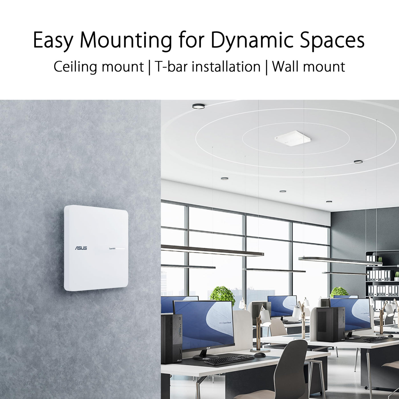 The Asus Expertwifi Eba63 Is A Power Over Ethernet (Poe) Access Point That Provides Fast, Seamless And Secure Networking, With Rich Features Tailored For Small-To-Midsized Businesses. With Its Easy Scalability Using Aimesh, It Can Effortlessly Adapt To Your Business Network Needs. Disclaimer: Actual Data Throughput And Wifi Coverage Will Vary From Network Conditions And Environmental Factors, Including The Volume Of Network Traffic, Building Material And Construction, And Network Overhead, Result In Lower Actual Data Throughput And Wireless Coverage.