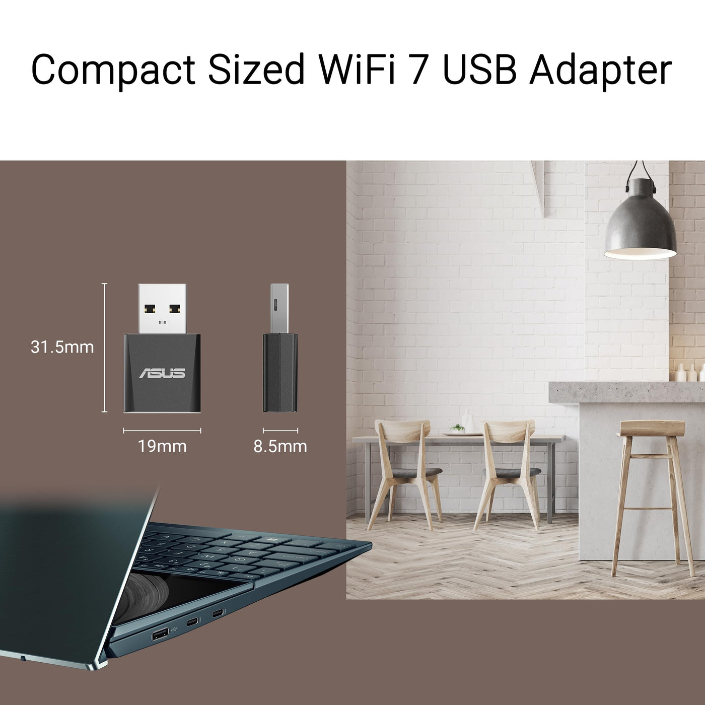 Asus Tri-Band Be6500 Wifi 7 Nano Usb Adapter, 6Ghz Band, Support 4096-Qam, Plug And Play, Compatible With Windows 10 & 11