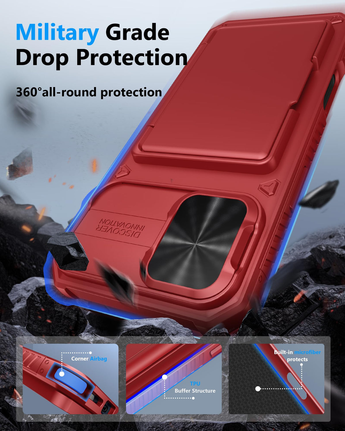 Atatoo For Iphone 16 Plus Case With Card Holder (Store 3 5 Cards) [Rfid Blocking] & Slide Lens Protector, Military Grade Protect