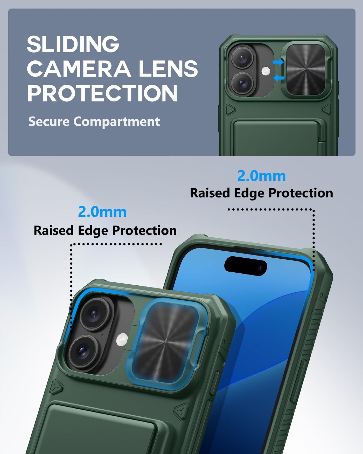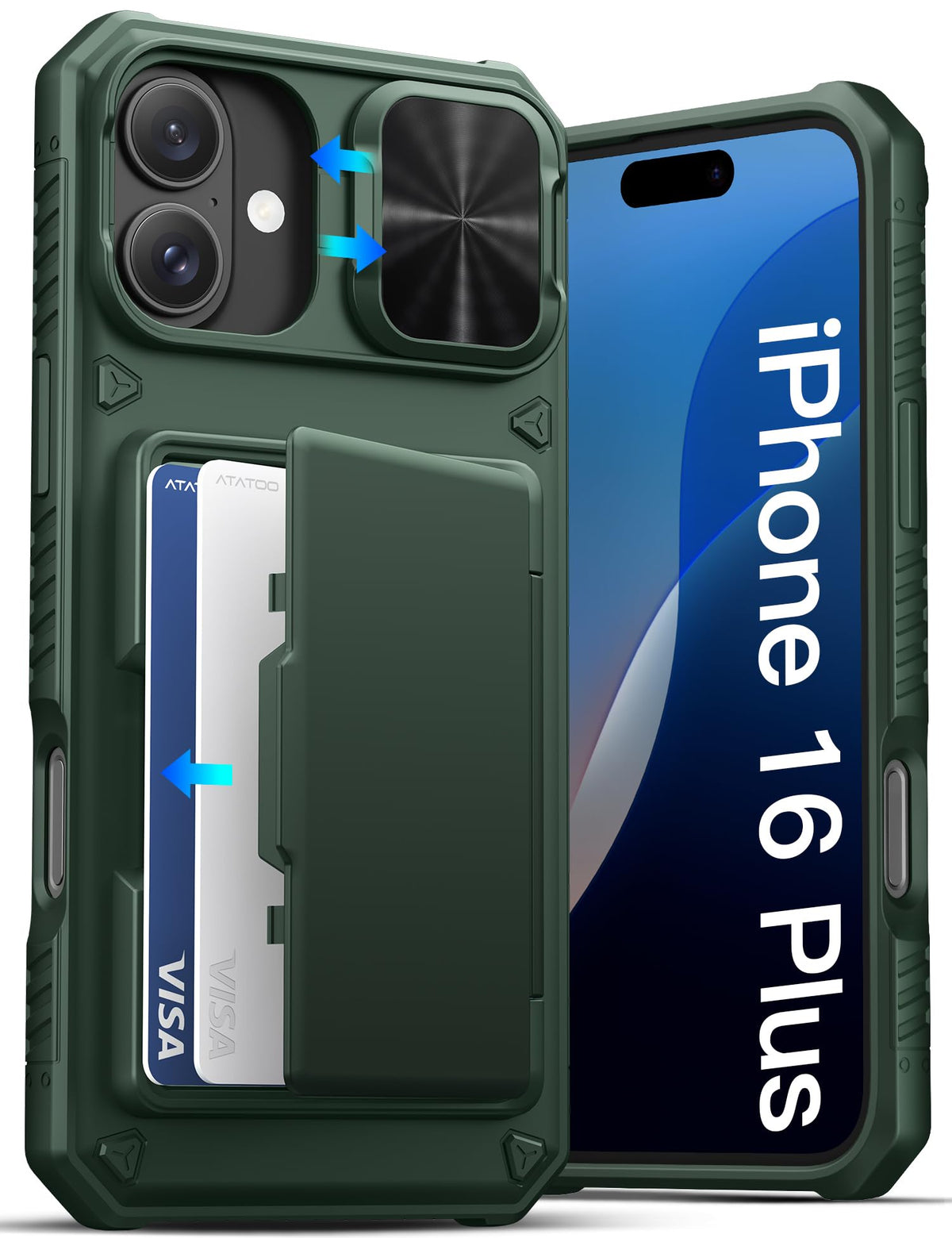 Atatoo For Iphone 16 Plus Wallet Case With Card Holder (Store 3 5 Cards) [Rfid Blocking] & Sliding Camera Cover, Military Grade