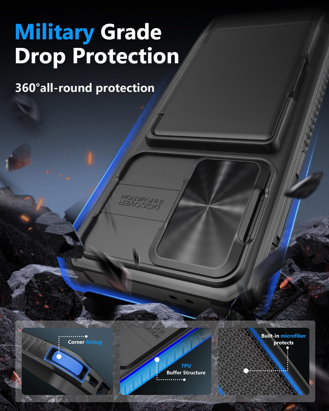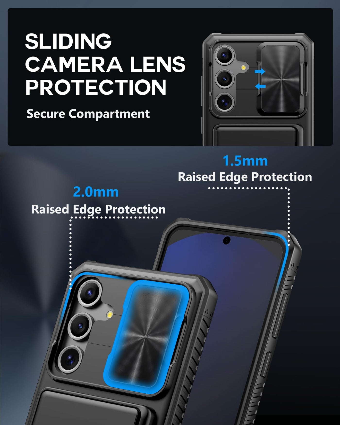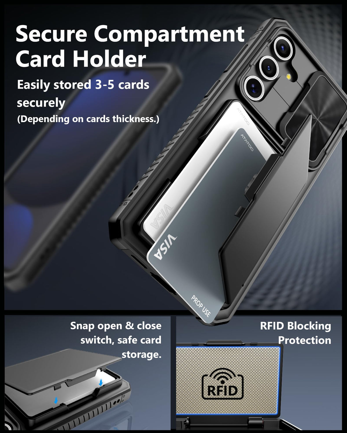 Atatoo For Samsung Galaxy S24 Fe Case With Card Holder(Store 4 5 Cards) [Rfid Blocking] & Slide Camera Cover, Military Grade Pro