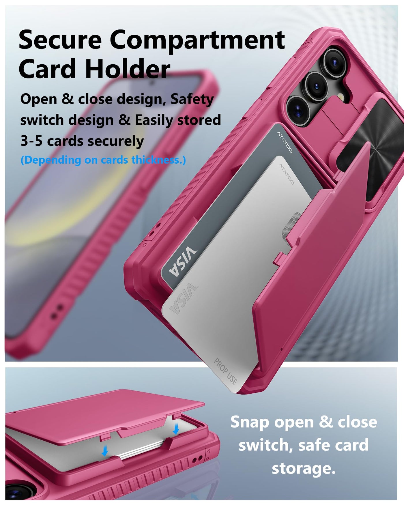 Atatoo For Samsung Galaxy S24+ Plus Case, Built In Card Holder(Store 4 5 Cards) & Slide Camera Cover, Military Grade Protection,