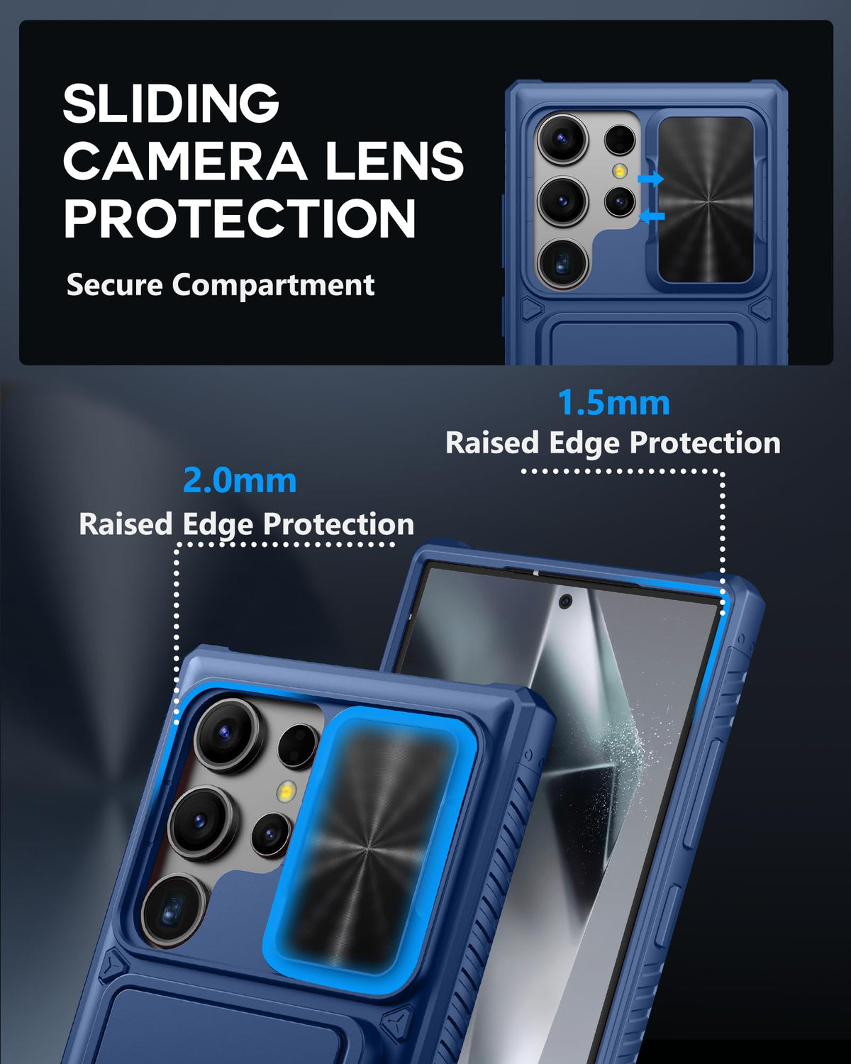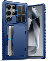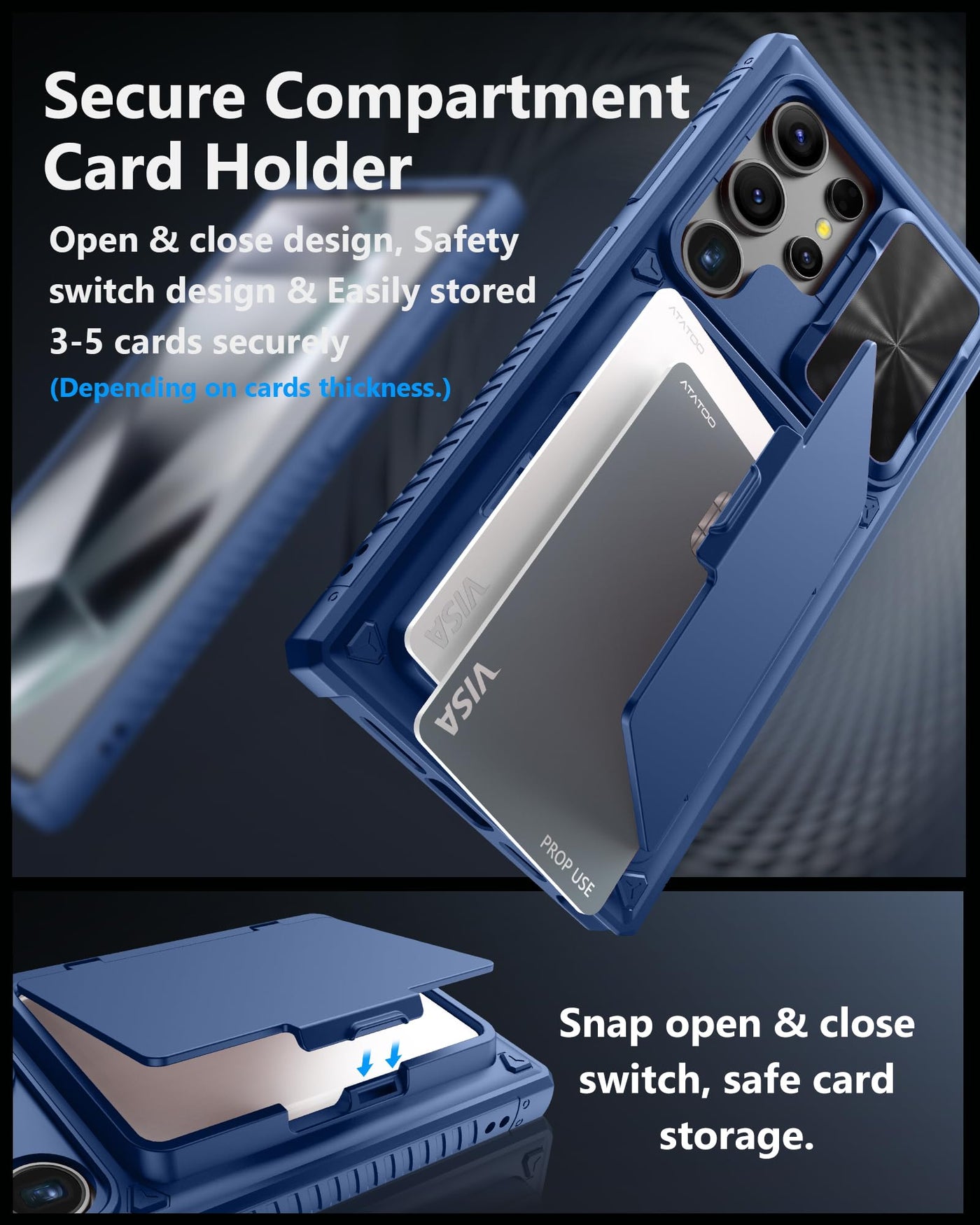 Atatoo For Samsung Galaxy S24 Ultra Case With Card Holder(Store 4 5 Cards) & Slide Camera Cover, Military Grade Protection, Rugg