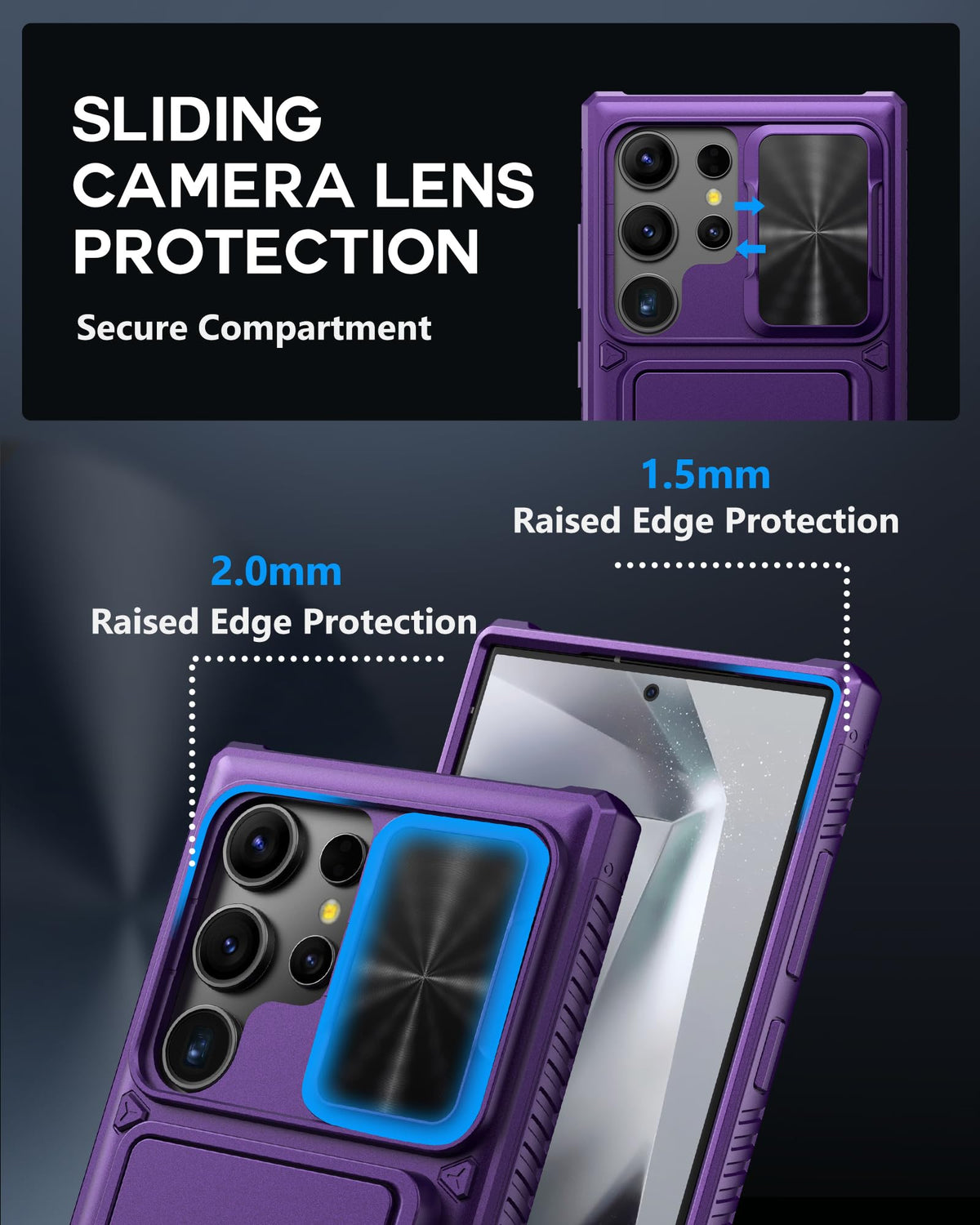 Atatoo For Samsung Galaxy S24 Ultra Case With Card Holder (Store 4 5 Cards) & Slide Lens Cover & Stand, [Military Grade Drop Pro
