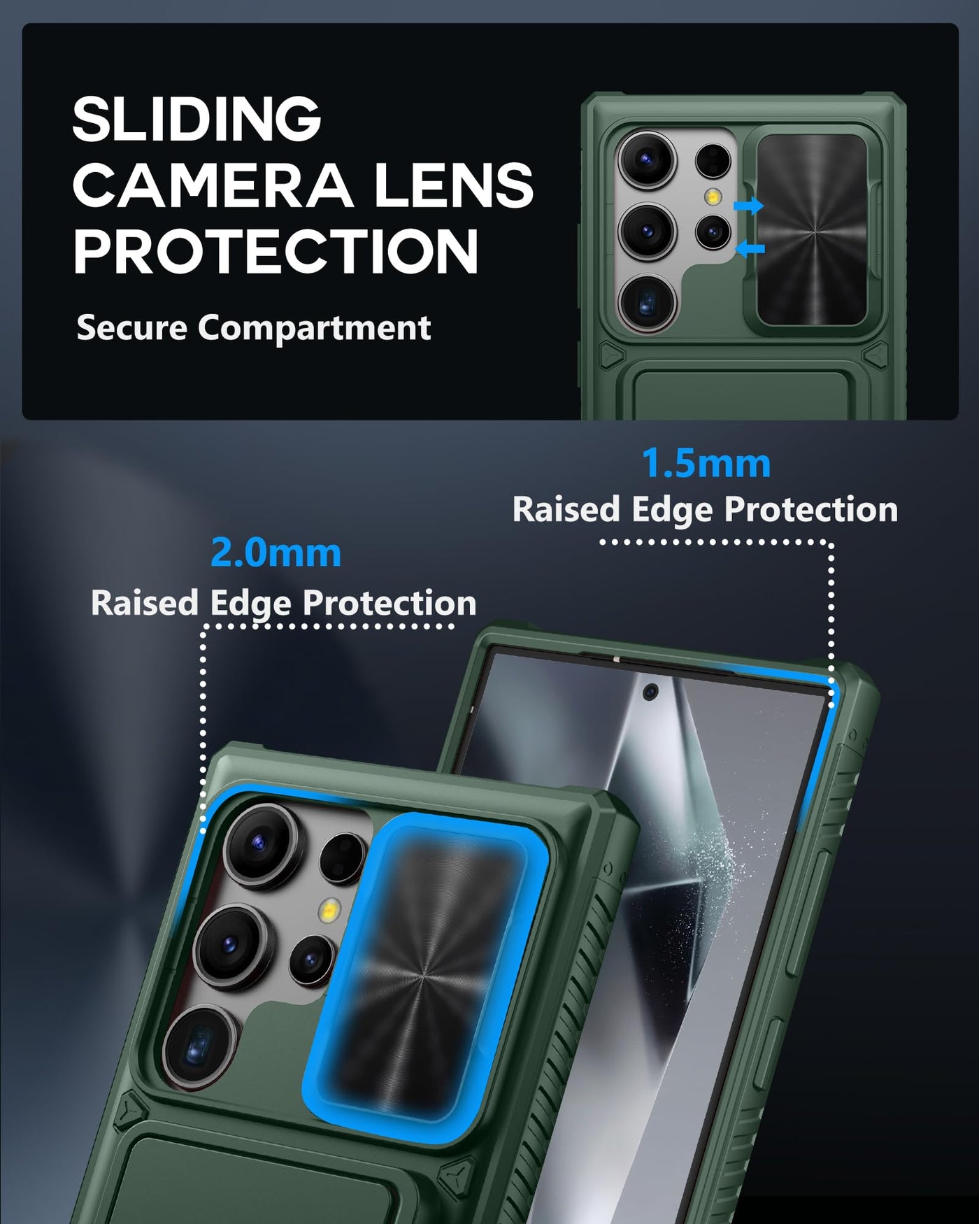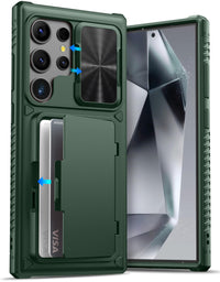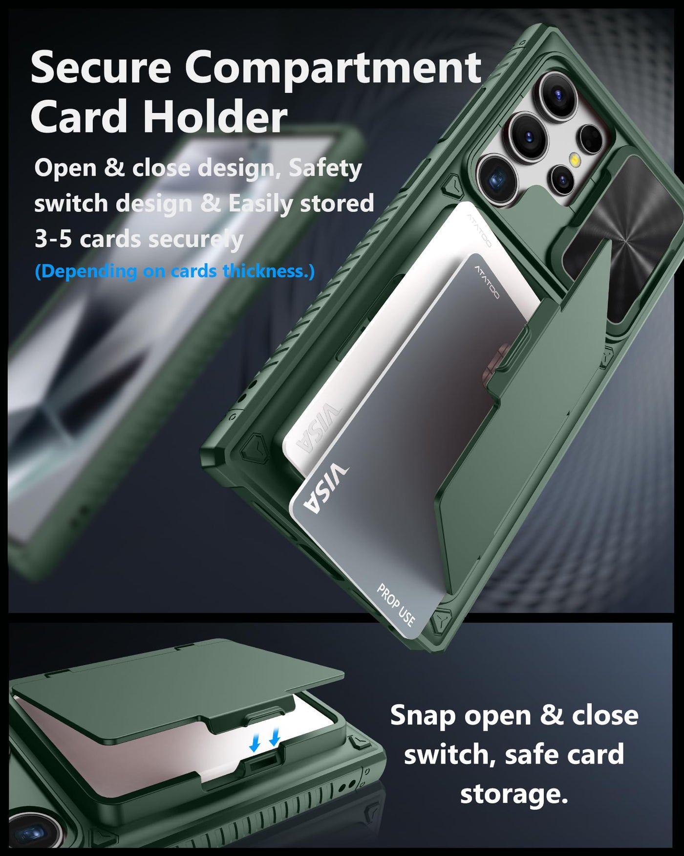 Atatoo For Samsung Galaxy S24 Ultra Wallet Case, Built In Card Holder(Store 4 5 Cards) & Sliding Camera Cover, Military Grade Pr