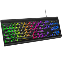 Atelus Large Print Backlit Keyboard, Usb Wired Computer Keyboard, Full Size Keyboard With Rainbow Illuminated Led Compatible For