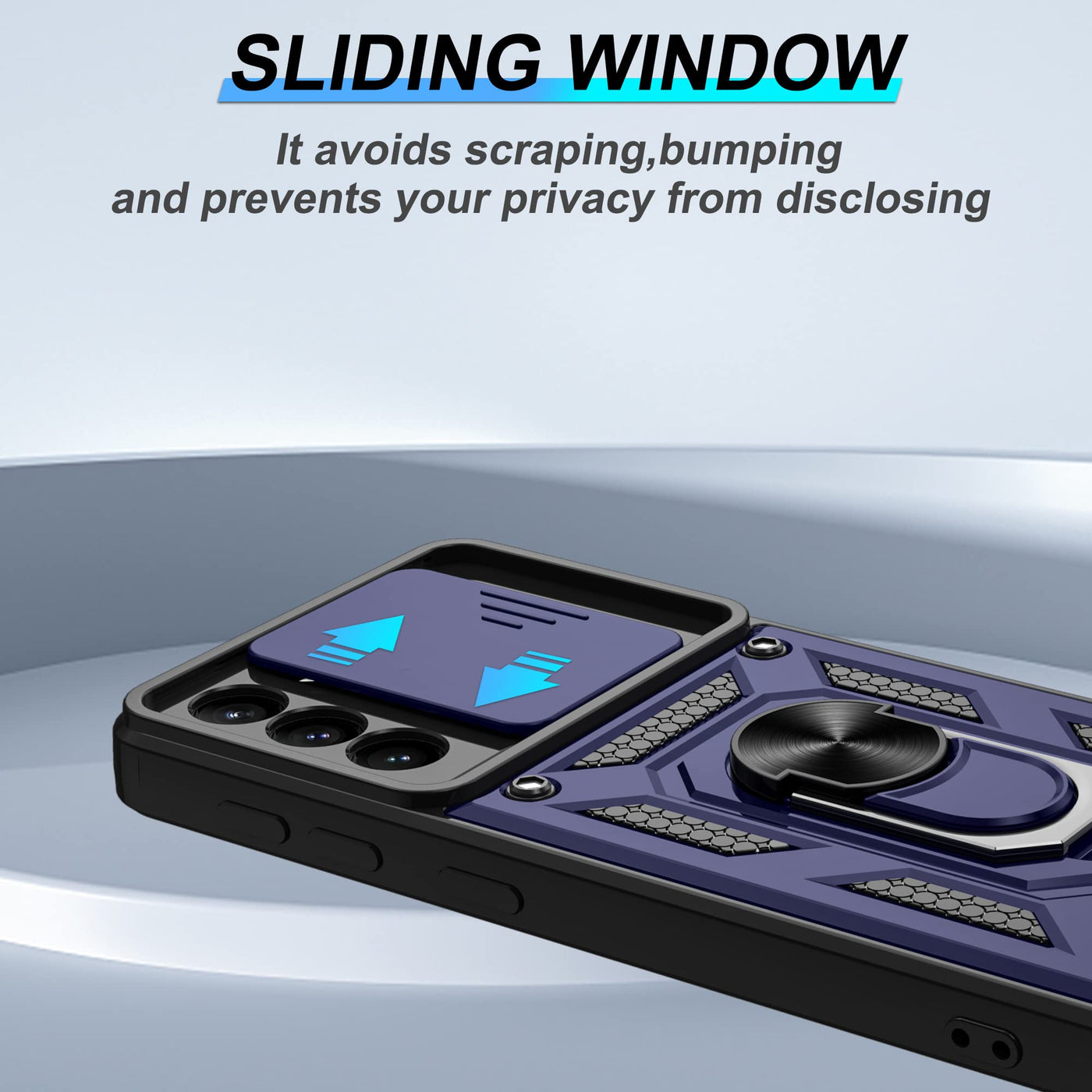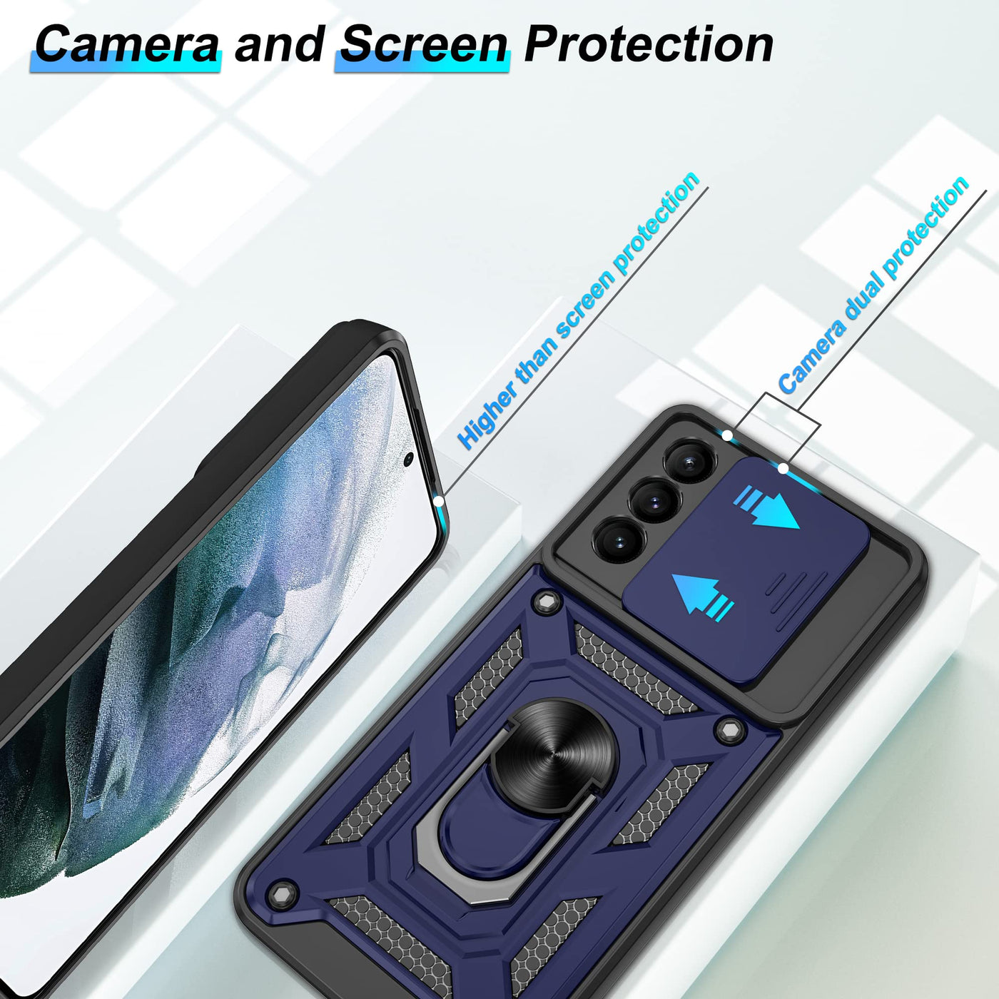 Atump Compatible With Samsung Galaxy S21 Plus Case With Hd Screen Protector With Slide Camera Cover, 360 Rotation Ring Kickst