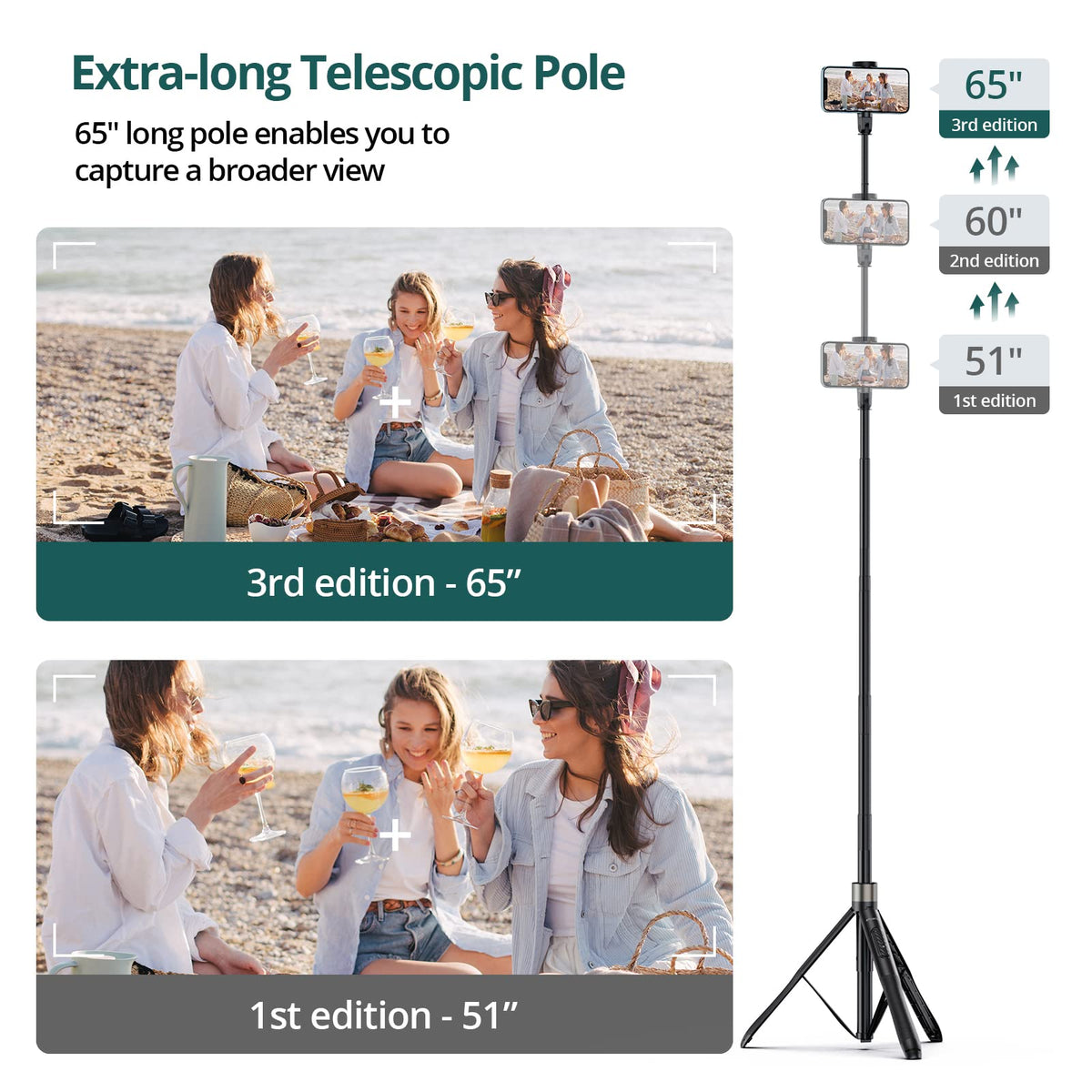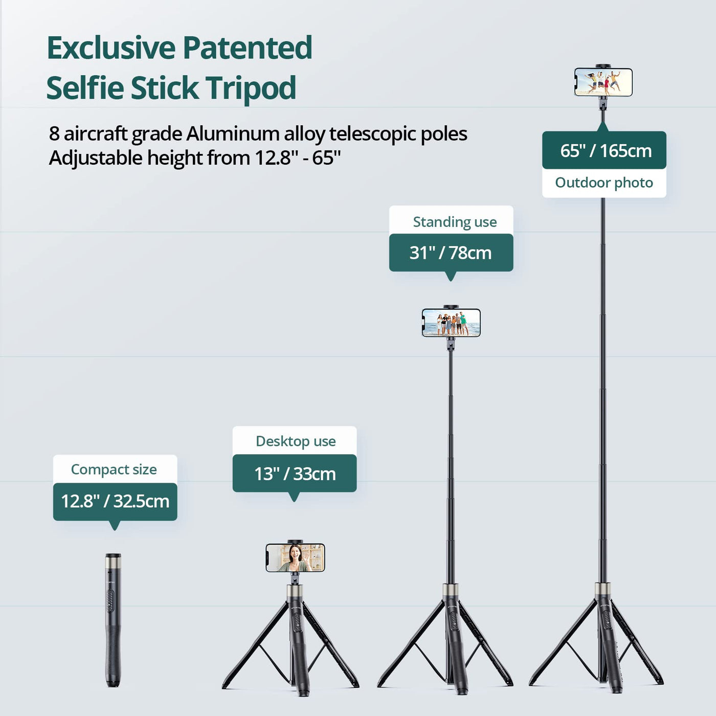 Atumtek 65'' Selfie Stick Tripod, All In One Extendable Phone Tripod Stand With Bluetooth Remote 360 Rotation For Iphone And And