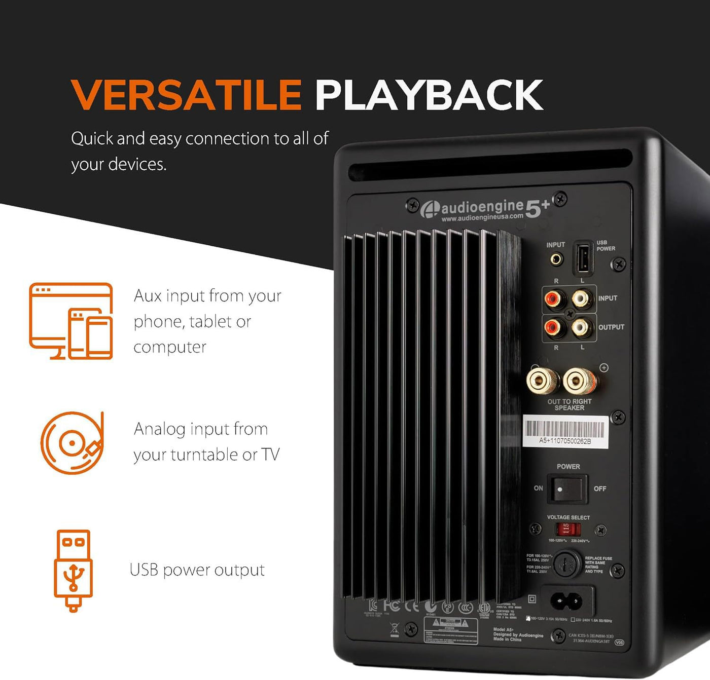 Discover The Exceptional Performance Of The Audioengine A5 150W Bluetooth Powered Speakers. As Superb Computer Speakers And Outdoor Speakers, These Powerhouses Deliver High-Quality Audio Which Would Elevate Your Home, Studio, Or Gaming Experiences. These Are Not Your Ordinary Speakers, They Come Equipped With Aptx Hd Sound Technology Which Ensures You Acquire Perfect Clarity In Every Beat. Constructed With 5In Custom Aramid Fiber Woofers And 0.75 Silk Dome Tweeters Wrapped In Precision-Tuned, Hand-Crafted Cabinets, These Bluetooth Speakers Promise Lasting Durability While Contributing To Exquisite Sound Production. Generating Dynamic 150W Peak Power Output, The Audioengine A5 Speakers Carry A Significant Punch. They'Re Your Ideal Speakers For Robust, Room-Filling Bass. With A 3.5 Mm Stereo Mini-Jack, Rca, Usb, Bluetooth Inputs Available, You Can Effortlessly Connect These Portable Speakers To Phones, Tablets, Desktops, Or Tvs. Thanks To Extended-Range Bluetooth Connectivity, They Can Seamlessly Form Connections Up To 100 Feet Away, Making Them Convenient Wireless Portable Speakers. Featuring Both Usb And Analog Aux Input Options Along With A Subwoofer Output, It Allows Easy Adaptability And Enhances The Overall Sound Output. With A Desktop-Friendly Size, These Are Reliable And Effective Desktop Speakers That Would Revolutionize Your Workspace Music Or Gaming Experience. With A 3-Year Product Warranty, These Bluetooth Speakers Portable Wireless Are Guaranteed To Satisfy Your High-Standards For Sound And Build Quality. Embrace The Captivating Musical Aura Produced By The Audioengine A5 Speakers, Enveloping You In Good Vibes All Day, Every Day. For Better Sound Output, Place The Speakers On A Speaker Stand, And Experience Even Better A5 Wireless Bluetooth Bookshelf Speakers.