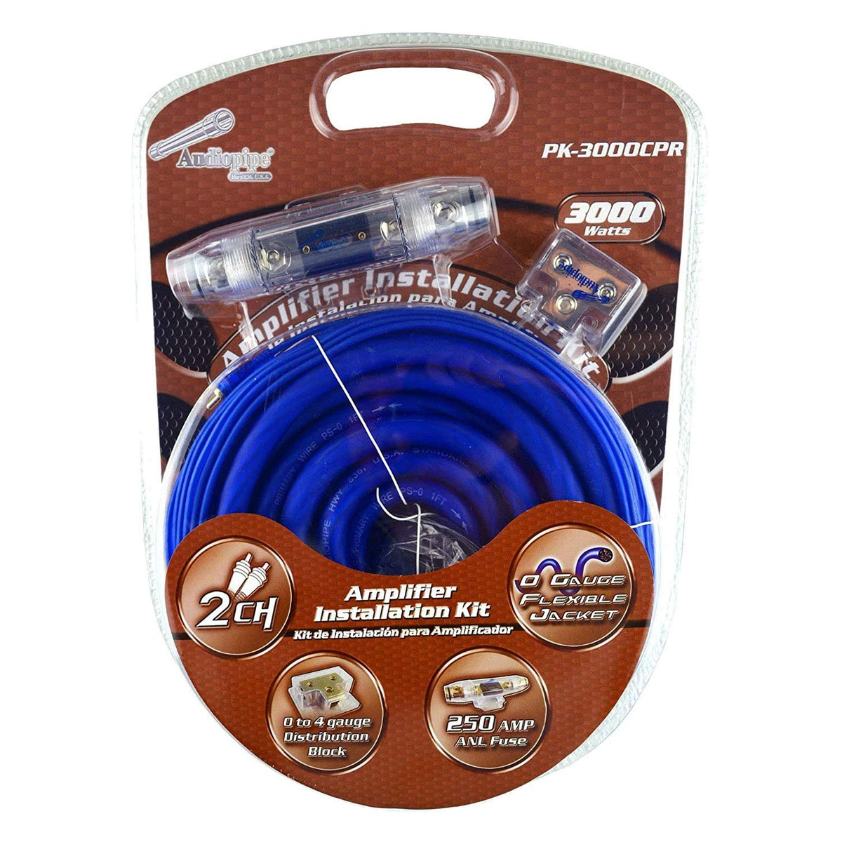 Ensure That Your Cars Audio System Setup Is Functioning Properly With The Audiopipe Pk-3000Cpr Copper Series 17 Foot 0 Gauge Amp Wiring Kit. This Car Audio Accessory Ensures Your Amplifier And Sound System Are Prepared For A Great In-Car Music Experience. With 3000 Watts Of Power And 100-Percent Copper Wiring, This Amp Wire Kit Is Sure To Pump Up Your Vehicles Sound. Featuring A Waterproof Fuse Block, Youll Have Peace-Of-Mind Knowing Your Set-Up Is Protected From Any Water While The Included Distribution Fuse Block Minimizes The Need For Extra Wires, Saving You Time And Money. Complete With Everything You Need To Hook Up Your Car Amplifier, This Kit Includes (1) 17-Foot 2 Rca To 2 Rca Cable With Signal Wire, (1) 17-Foot Clear Blue 0-Gauge Power Wire, (1) 3-Foot Clear Silver 4-Gauge Ground Wire With Terminal, (1) Blue Power Cable And Attached Ring Terminal, (1) 0 To 4-Gauge Power Distribution Block, (1) 250-Amp Anl Fuse Block, (10) Cables Ties, And (10) Screws.