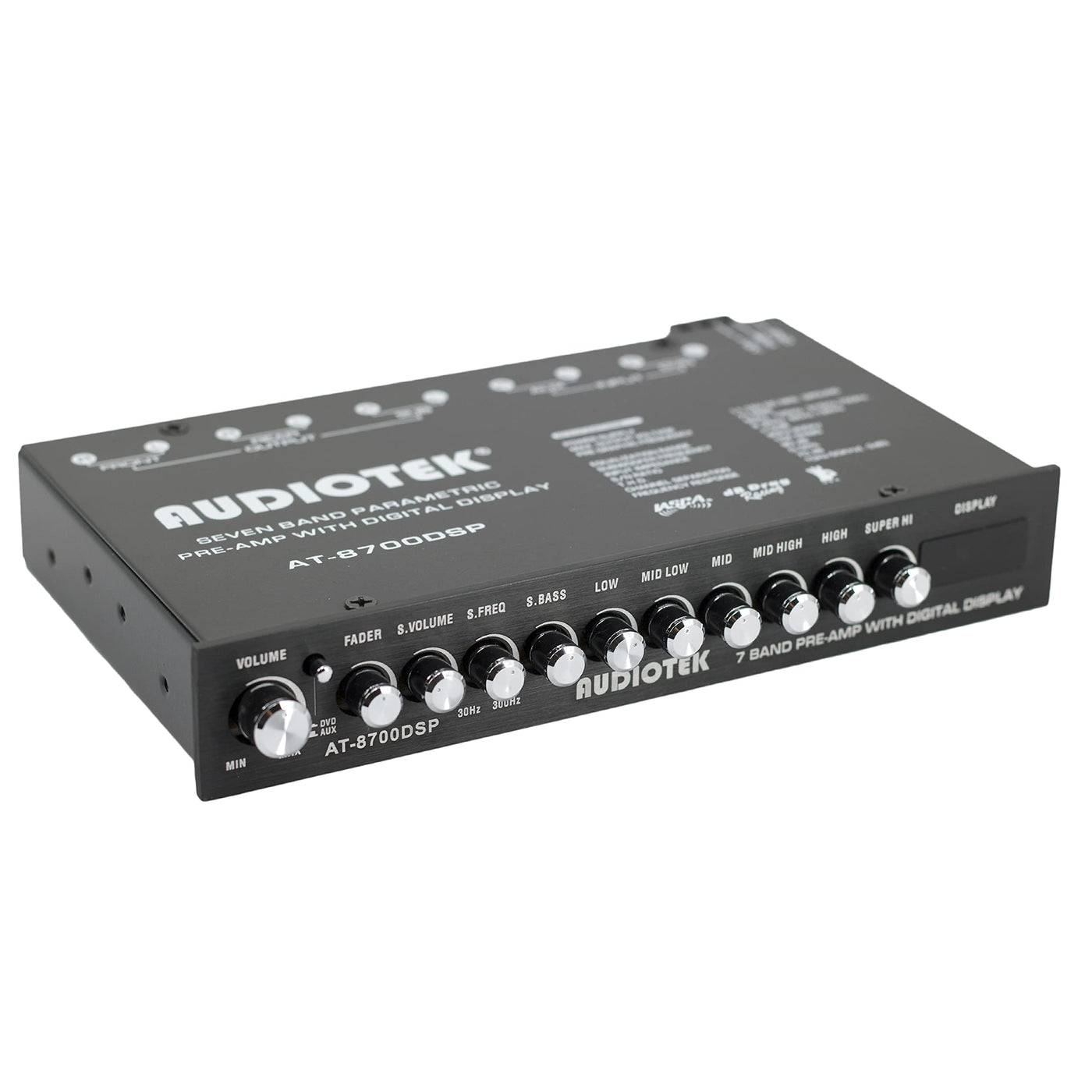 Audiotek 8700Dsp 1/2 Din 7 Band Car Audio Equalizer Eq Front, Rear + Sub Output, Up To 7V Rms Of Output, Gold Plated Rca Connectors For Best Audio Output For Car, Boat, Rv, Rtv, Motorcycle