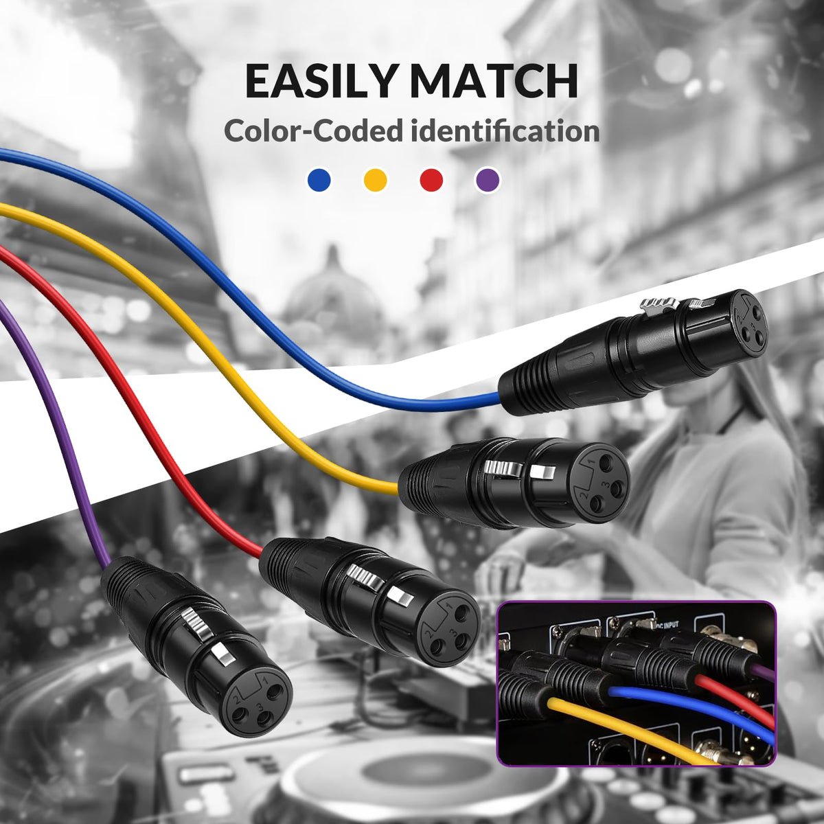 Augioth 4 Channel Xlr Snake Cables 3Ft, Color Coded Xlr To Xlr Patch Cable,Xlr Male To Female Xlr Cable Audio Extension Cable,Xl
