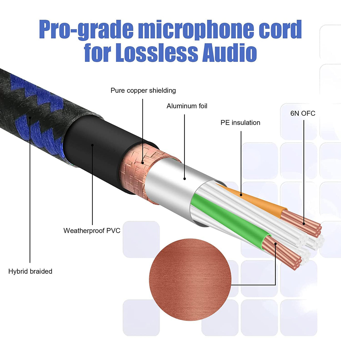 Q: What are the benefits of using the Augioth XLR to XLR Pro Mic Cable?A: The Augioth XLR to XLR Pro Mic Cable features double shielding for strong anti-interference, ensuring high-definition audio transmission without background noise. Its durable blue nylon braided design adds flexibility and visibility, making it easier to spot among other cables.
