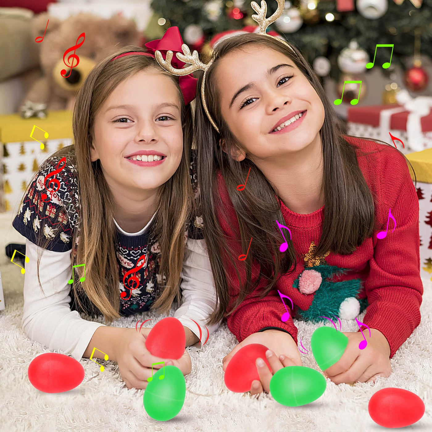 Augshy 24 Packs Christmas Shaker Musical Instruments For Kids, 12 Packs Egg Shaker And 12 Packs Wrist Hand Band Jingle Bells (Re
