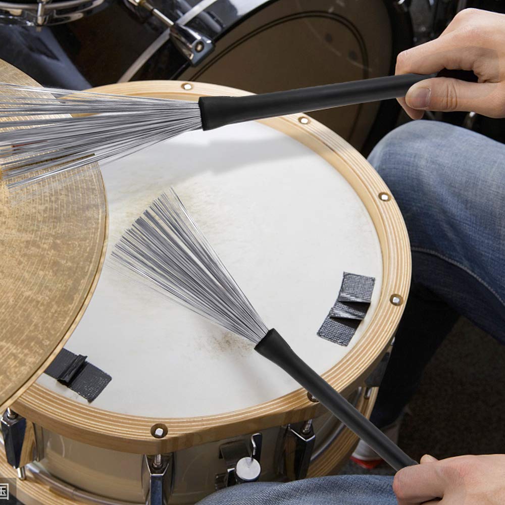 Features: Adjustable Drum Brush: Good Touch Feeling, Can Be Adjusted Flexibly. When Not In Use, The Steel Brush Can Be Retracted At One End To Avoid Damage, Convenient And Flexible. Hanging Ring Design, Can Be Hung. The Surface Is Smooth, Easy To Play, Has A Good Balance And Rebound Effect, And Can Get A Natural Soft Sound. Exquisite Drum Sticks: High Strength, Light Color, Beautiful Texture; Not Easy To Absorb Water, Corrosion Resistance, Are Polished With Non-Slip Surface For Comfortable Grip. It Is A Good Choices For Drummer Playing, Beginner Practicing And More. The Black Velvet Drawstring Bag: It'S Helpful To Store And Carry The Stick Brush; Save Space: The Loop On The End Helps You Hang The Brush Conveniently. Specification: Drumsticks Size: Approx. 40.6 Cm/ 16 Inch In Length, 14 Mm/ 0.58 Inch In Diameter Drum Brushes Size: Approx. 32.5 Cm/ 13 Inch In Length Wire Brush Length: Approx. 4.7 Inch/ 12 Cm Loop End Inner Diameter: Approx. 0.8 Inch/ 2 Cm Bag: 16.5 *3*1.2Inches/42*7.5*3.2Cm. Package Included: 3 Pairs Of Wood Drum Sticks 1 Pair Of Drum Wire Brushes 1 X Black Velvet Bag