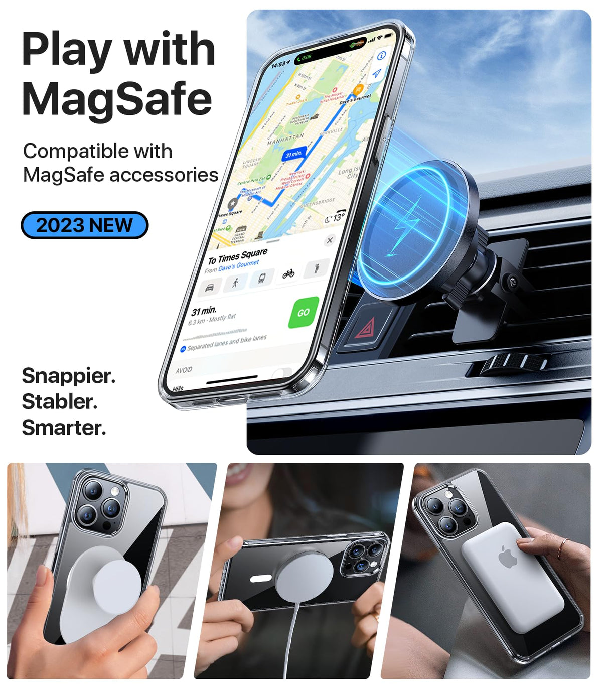 Q: How does the magnetic feature of the case enhance usability?A: The case features Aulofe's exclusive N52SH strong magnet that provides a 300% stronger magnetic hold compared to standard cases. This ensures precise compatibility with MagSafe accessories, allowing for easy attachment and secure wireless charging.