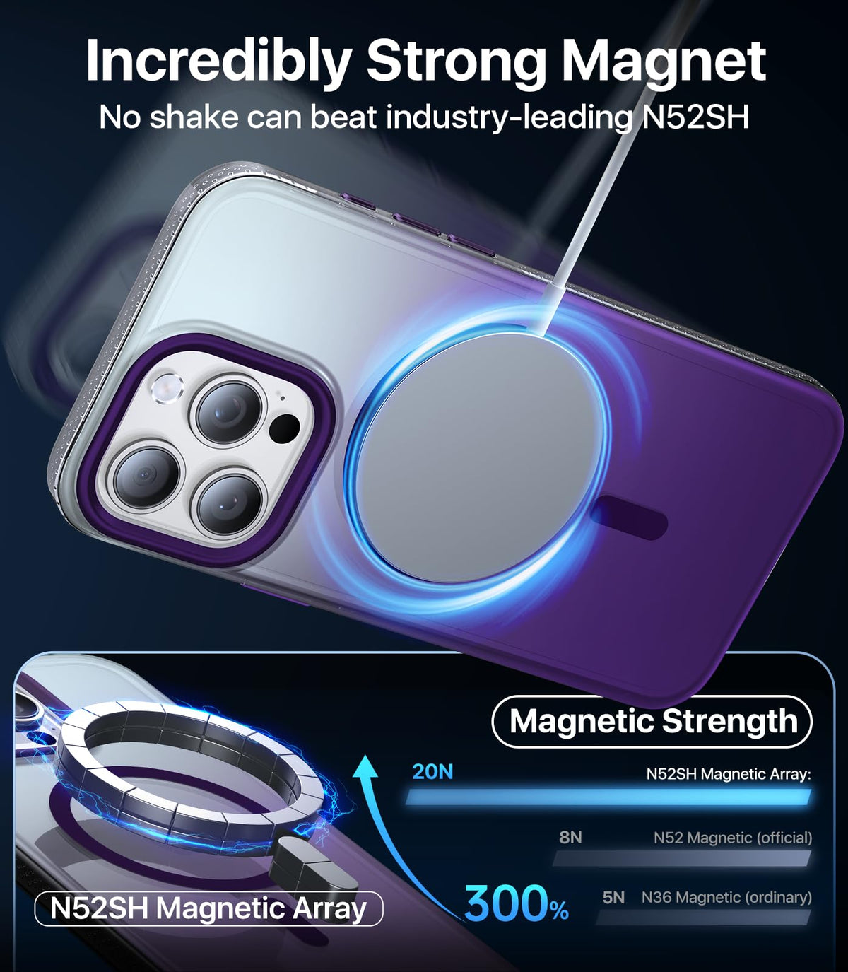 Q: Is the Aulofe Magnetic Shockproof case compatible with MagSafe accessories?A: Yes, the Aulofe Magnetic Shockproof case is designed with Aulofe's exclusive N52SH strong magnet, which ensures precise compatibility with MagSafe accessories for a secure and firm snap.