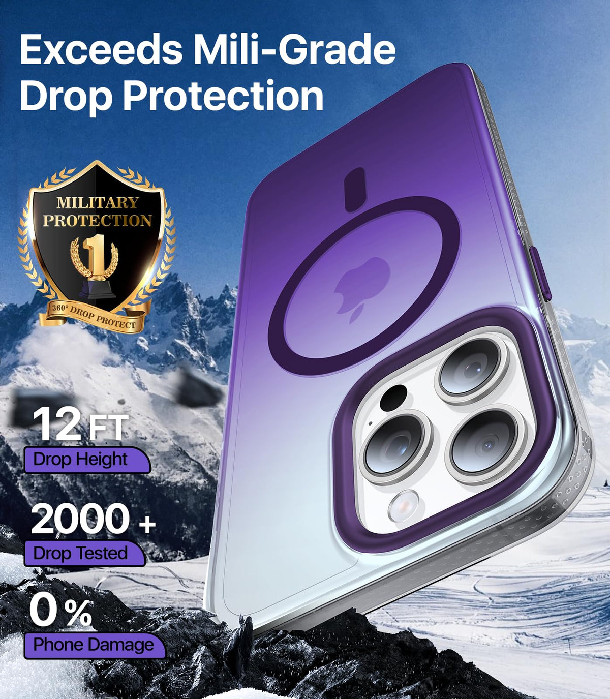 Q: How does the Aulofe case protect my iPhone 16 Pro Max from drops?A: The case features 360-degree shock-absorbing airbags, an explosion-proof hard back, and a 4-layer cushioning structure that have been tested to achieve '0' damage in 4,000 drop tests from a height of 12 feet.