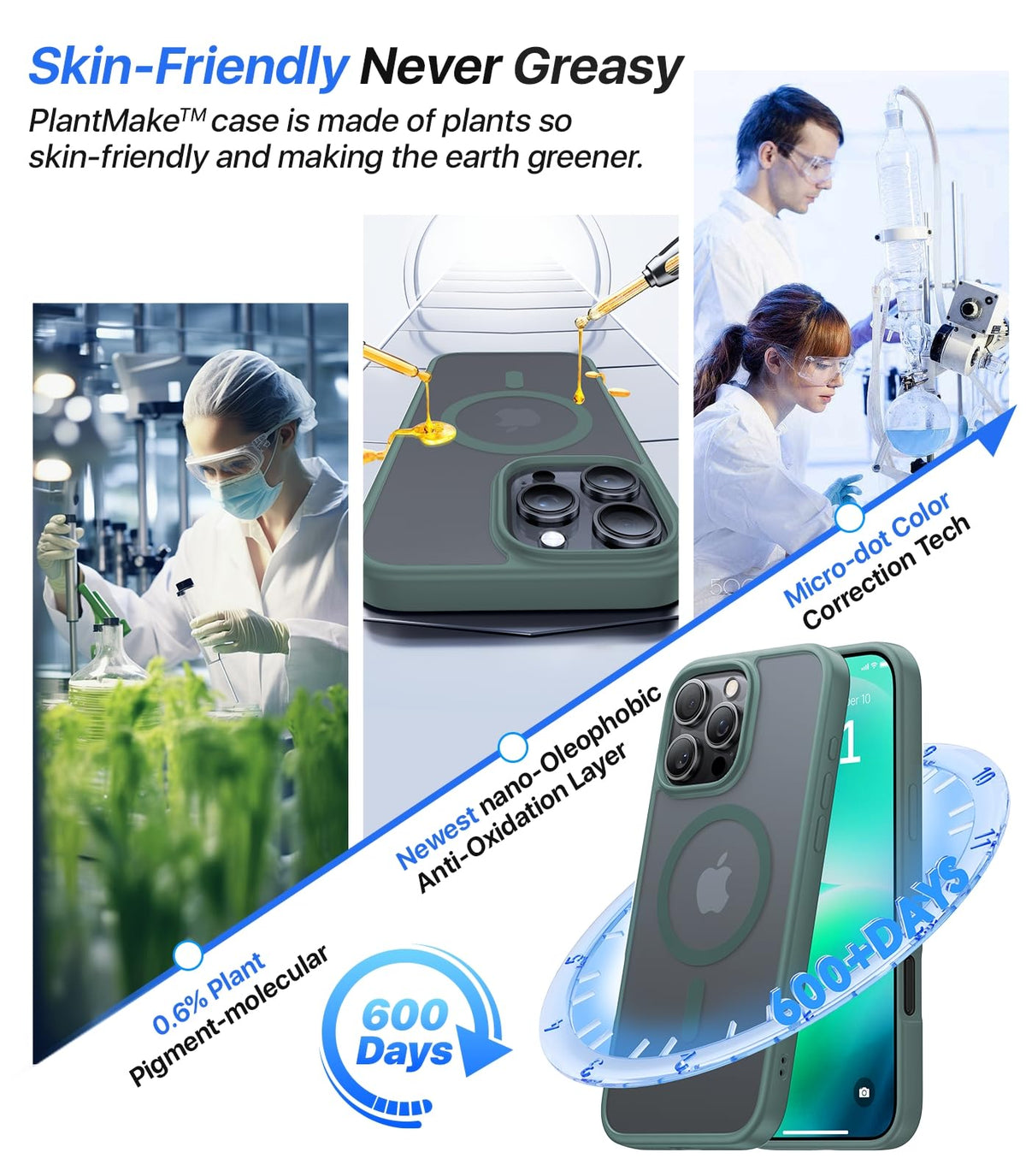 Q: Is the material used in the Aulofe case environmentally friendly?A: Yes, the Aulofe case is made from PlantMake™ material, which is skin-friendly, safer, and more environmentally friendly, incorporating plant pigment molecules and a nano-oleophobic layer to resist smudges and scratches.