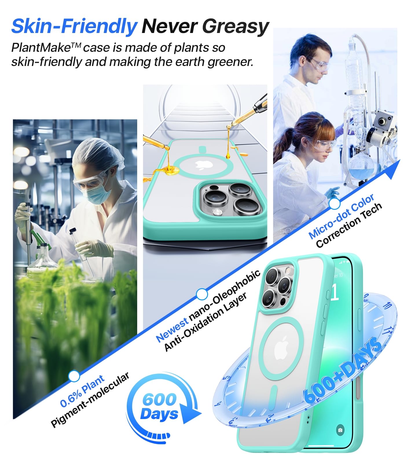 Q: Is the material used in this case environmentally friendly?A: Yes, the Aulofe case is made from PlantMakeTM materials, which are skin-friendly and environmentally friendly, incorporating plant pigments for color correction and a nano-oleophobic layer to resist smudges and scratches.