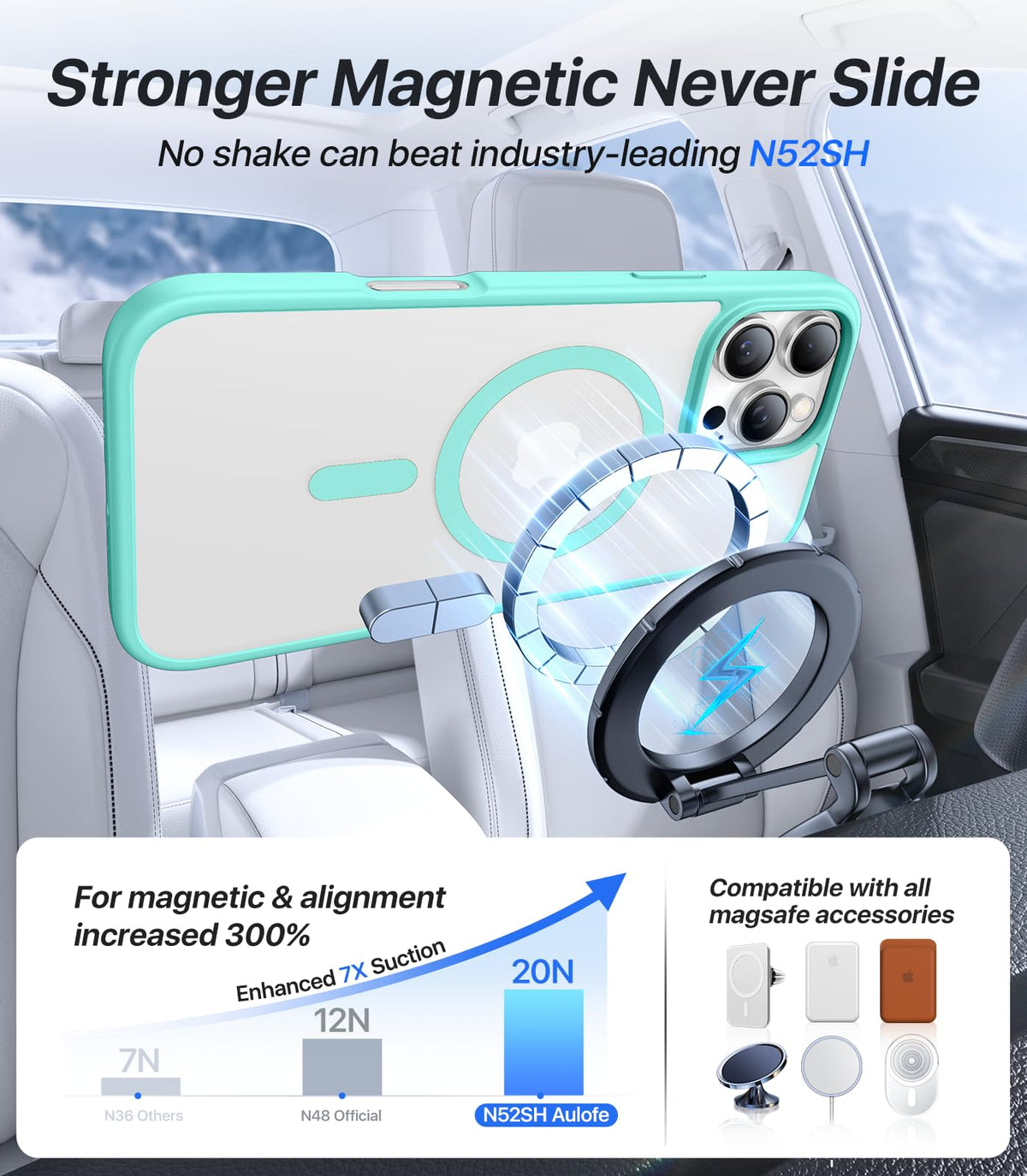 Q: Is the Aulofe Magnetic Shockproof Case compatible with MagSafe accessories?A: Yes, the Aulofe Magnetic Shockproof Case is designed with Aulofe's exclusive N52SH strong magnet, providing precise compatibility with MagSafe accessories for a secure and firm connection.