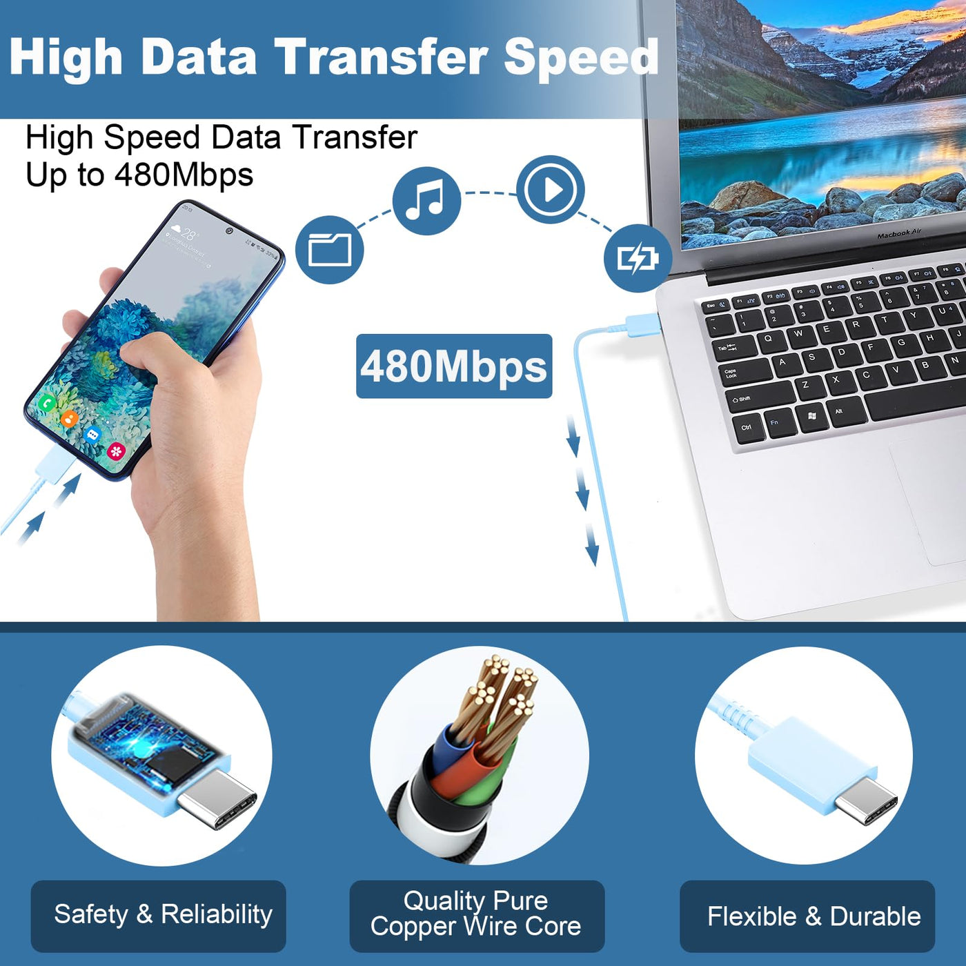 Auorld 45W Usb C Charger, Pps Fast Charging Block For Samsung Galaxy S24 Ultra/S24/S23/S22 Ultra/Note 10/20, 8Ft Cord Blue