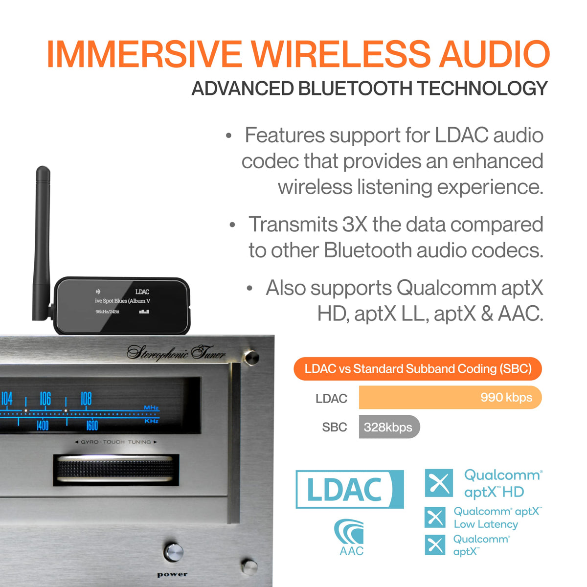 Auris Blume Pro Hifi Bluetooth 5.0 Music Receiver Long Range Bluetooth Adapter With Audiophile Dac, Ldac, Aptx Hd, Oled Display & Optical Coaxial Aux Output For Home Stereo, Av Receiver Or Amplifier
