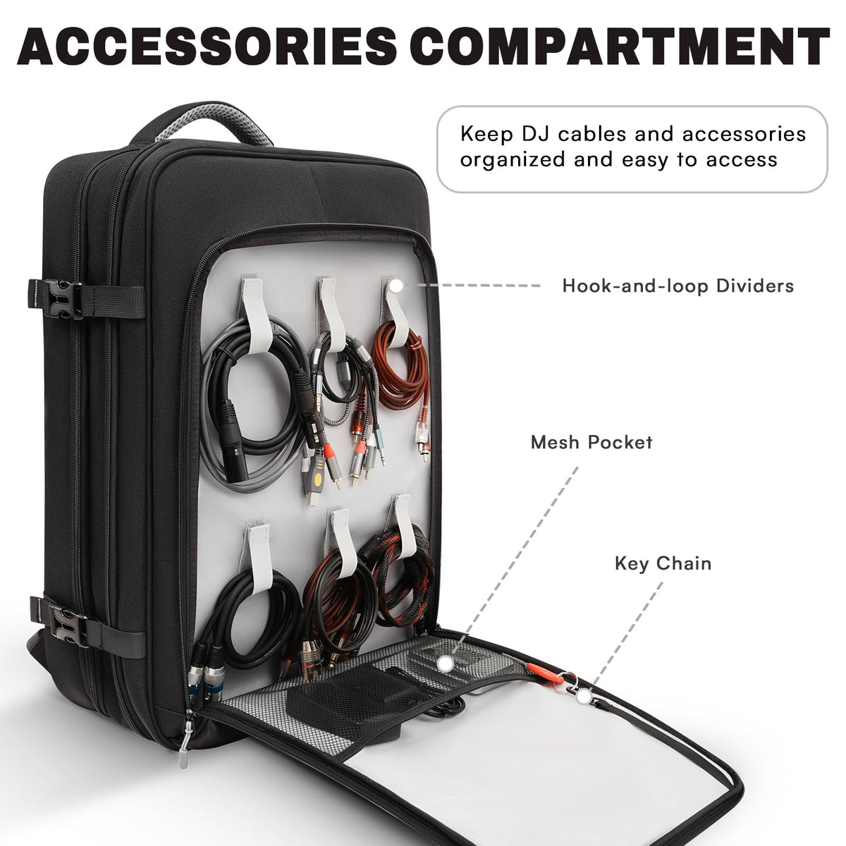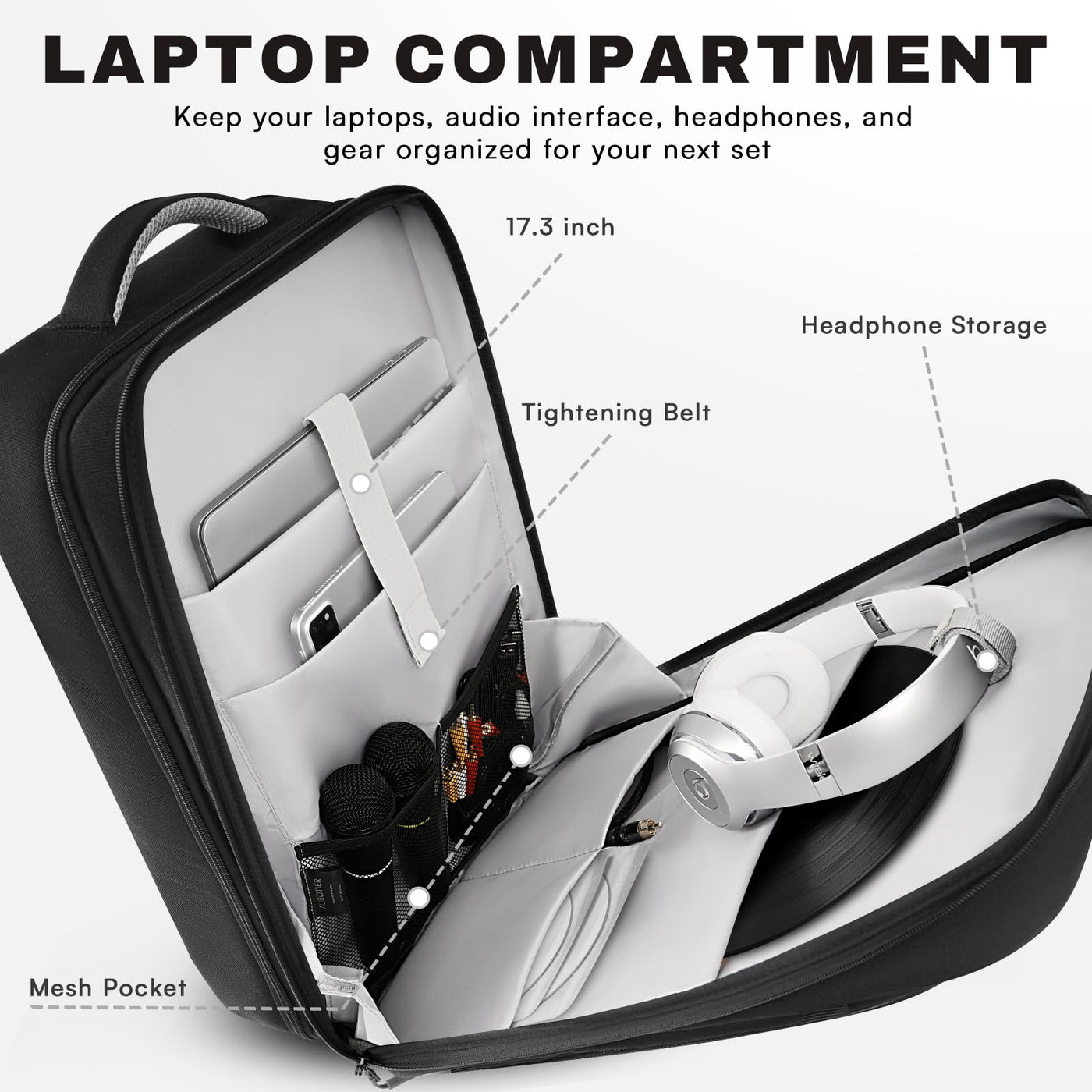 Aurotier Dj Controller Bag For Ddj-Flx4/Ddj 200/Ddj 400/Ddj Rev1, Padded Dj Backpack With Multi-Pocket For 17 Inch Laptop, Cable
