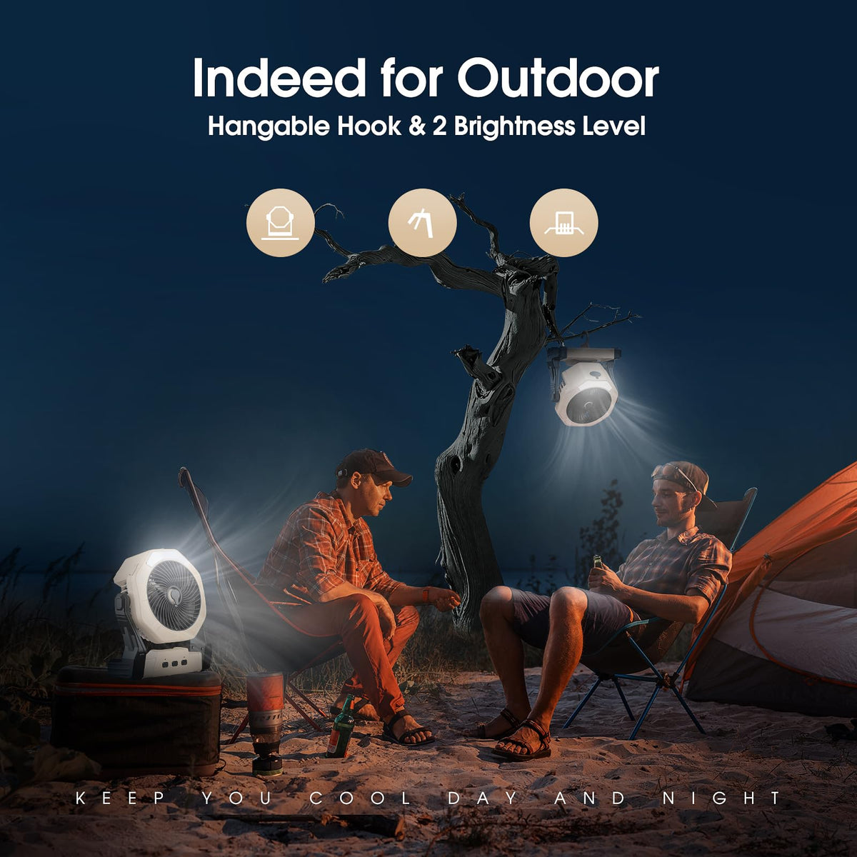 ???????????????? ?????????????? ?????????????????Cool Water Mist Sprays Onto The Skin, Evaporating And Taking Away More Heat From The Skin'S Surface; As The Water Mist Disperses Into The Air, It Further Lowers The Temperature Of The Surrounding Air. That Dual Cooling Effect Lets You Enjoy Clearer And Cooler Air Like Being In The Mountains And Streams, And Say Goodbye To Dryness And Heat This Summer. | ?????????????????? ???????????????? ???????????????This Battery Powered Misting Fan, Built-In 10000Mah Battery Provides 7-35 Hours Of Working Time After 6.5 Hours Fully Charged. Meet Your Long-Time Outdoor And Work Needs. | ???????????? ?????????? ?????????The Misting Function Has 2 Modes. ?Continuous Mode: 150Ml/H, 250Ml Water Can Be Sprayed For 100 Minutes; ?Discontinuous Mode: 100Ml/H, 250Ml Water Can Be Sprayed For 150 Minutes. ?Kindly Note: It Will Be Cooler With Ice Water! | ???????????????????? ?????????? & ?? ?????????????This Mist Fan Adopts A Brushless Motor Imported From Germany, With Quietness And A Long Lifetime As Its Main Advantages. That Motor Combines High-End Aerodynamic Fan Blades For Providing 3 Speeds (6.6 Ft/S; 11.0 Ft/S; 14.4 Ft/S)To Meet Your Different Cooling Needs. | ???????????????? ?????? & ???????????????? ???????The Base Of The Fan Has Non-Slip Pads And A Hook Design, Which Makes It Run More Stably On The Desktop, And Can Also Be Hung On Trees, Horizontal Bars, Tents, And Other Occasions Expediently. | ???????? ?????????????? ???????????????This Portable Outdoors Fan Has 2 Brightness Settings. The Genial Brightness Can Emit A Soft And Non-Glaring Light, And The Glow Brightness Can Illuminate The Entire Tent. It Is An Ideal Light Source For Camping, Hiking, And Bbq At Night. | ?????????????? ?????????This Outdoor Fan With Mister Is Made Of Sturdy And Sturdy Abs Material, And Packed In A Beautiful Box, Which Is Very Suitable For Giving To People Around You In Summer! Great For Office Desk, Car Backseat, Bicycle, Camping Tent, Home, Kitchen, Dormitory, Library, Gym Exercising, And Outdoors. | ??????????????? ?????????????To Prevent Dust From Being Adsorbed Or Blocking The Spray Port, ?Please Don'T Use Dirty Water; ?Please Cover The Spray Cap When The Fan Is Not In Use; ?Fans Must Pass Professional Functional Tests Before Leaving The Factory, So It Is Normal If Any(A Small Amount) Water Droplets In The Water Tank.
