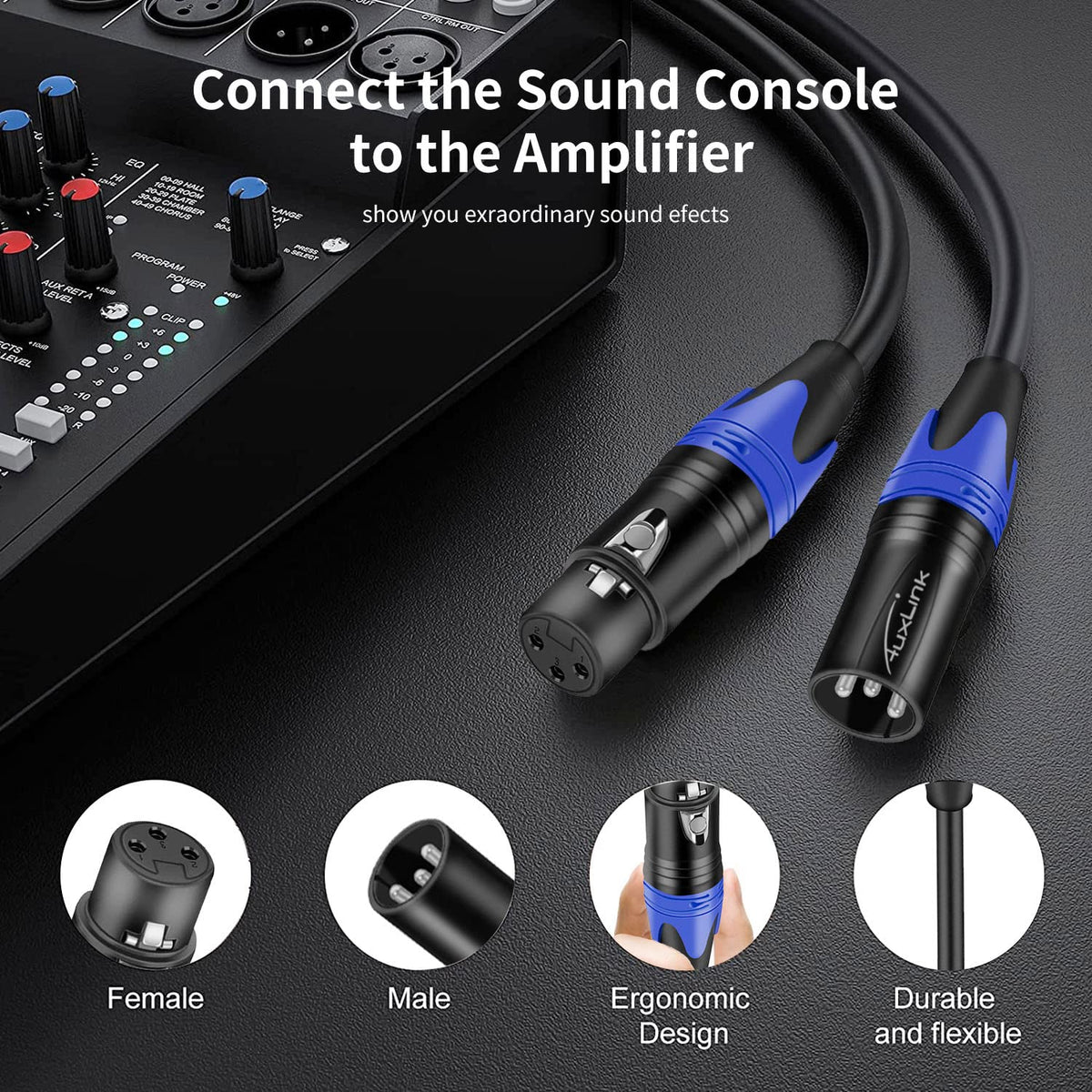 Auxlink Xlr Microphone Cables Are Pursuing To Make For Better Xlr Cables For Studio Recording And Live Sound. The Balanced Cables Constructed With Premium Pvc Jacket, Sturdy Metal Housing With Pure Silver Plated 3-Pin, Which Makes It More Durable For Use. Oxygen Free Copper Shielding & Extra Foil Shielding With 2-Conductor, Reduces Interference And Excess Noise, Which Will Bring You A More Clear, Natural And High Quality Sound. Auxlink Feature-Filled Audio Male To Female Xlr Microphone Cable Product Specifications: Material: Pvc + Pure Copper Black Metal Connector: Sturdy Metal With Silver Plated 3-Pin Cable Color: Black Length: 3.3Ft / 6.6Ft/ 16Ft / 26Ft /52Ft Lengths Are Available Double Shielding: Oxygen Free Copper Shielding & Extra Foil Shielding Application: Suitable For Microphones, Studio, Mixer, Speaker Systems And Other Live Sound. Auxlink Xlr Cables Providing With You 1.5Ft, 3.3 Feet, 6.6 Feet, 11 Feet, 15Ft, 26 Feet ,52 Feet And 100Ft Lengths Cables, 2 Packs Which Will Meet The Needs Of Different Occasions. The Shorter Cables Work Well For Home Studios Or Smaller Stages, While The Longer Cables Make For More Professional Platforms Or When Needing More Leeway.