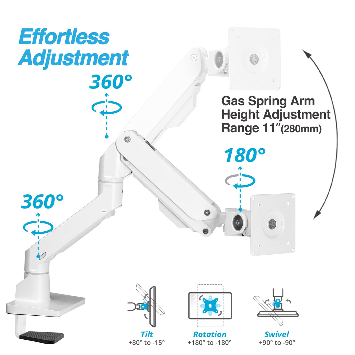 Q: How do I adjust the height of my monitor using this arm?A: The monitor arm features a gas spring mechanism that allows for easy height adjustment from 8.1 inches to 19.1 inches. This enables you to find the optimal ergonomic viewing position with minimal effort.