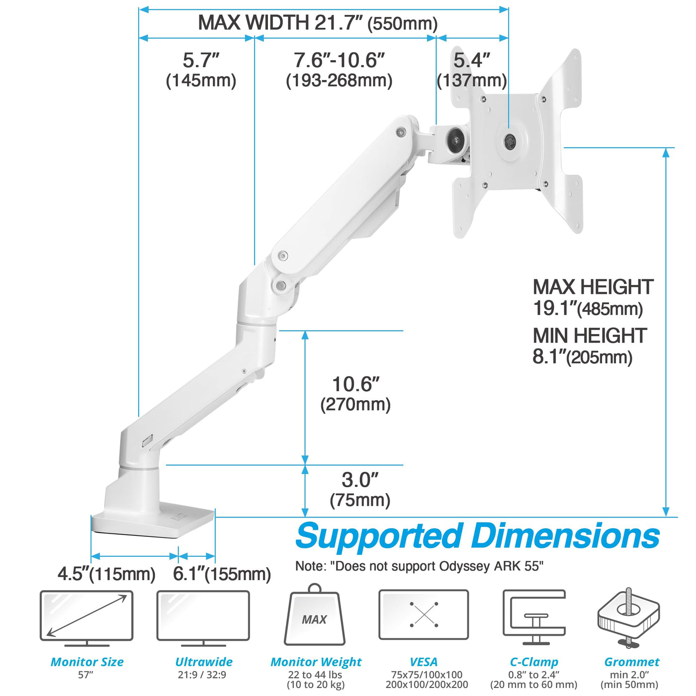Avlt Single 34 -57 Monitor Arm Desk Mount Fits One 44 Lbs Heavy Duty Monitor Full Motion Height Swivel Tilt Rotation Adjustable Monitor White Arm Vesa 200X200 200X100 100X100 75X75