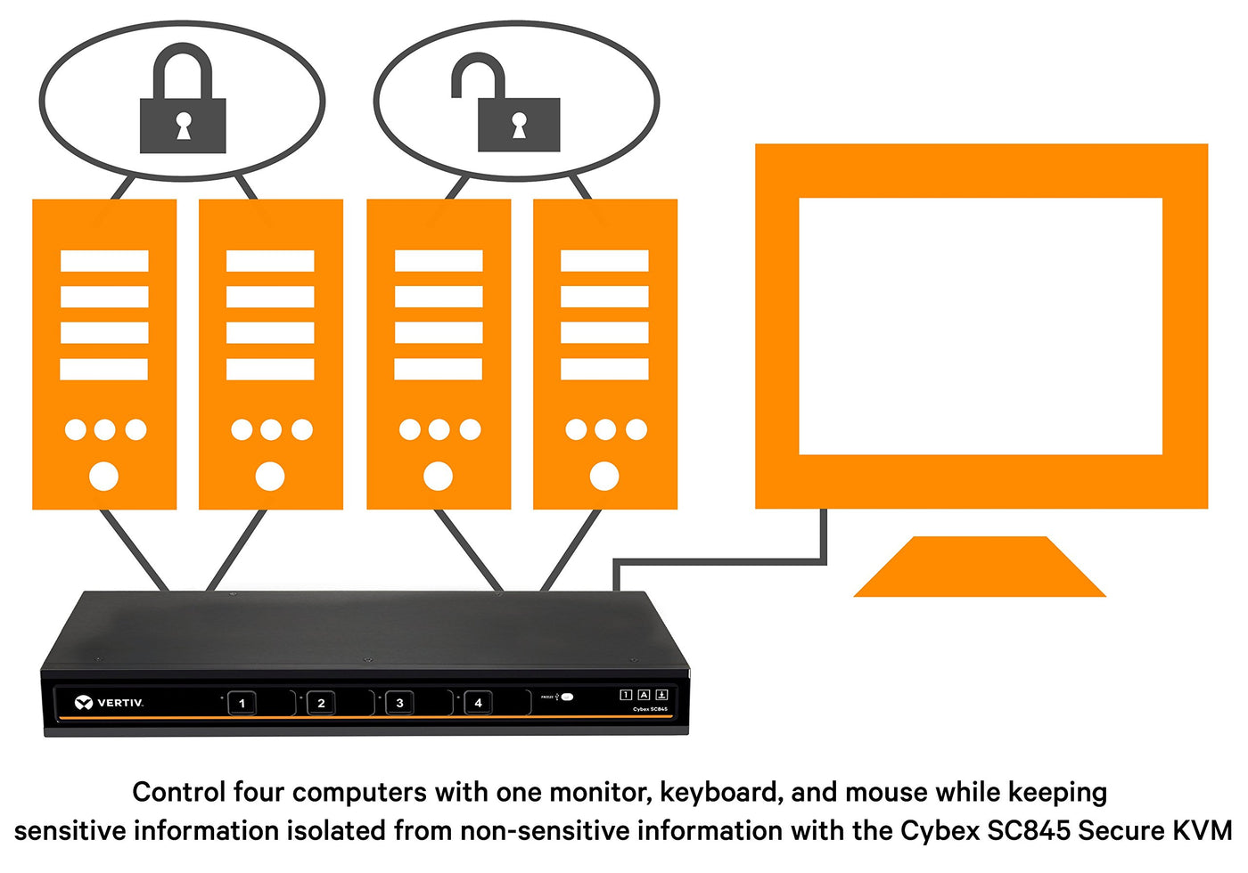Avocent Vertiv Cybex Sc800 Secure Desktop Kvm Switch, Single Head Monitor, 4 Port, Dual Link, Secure Desktop Kvm Switch, Common