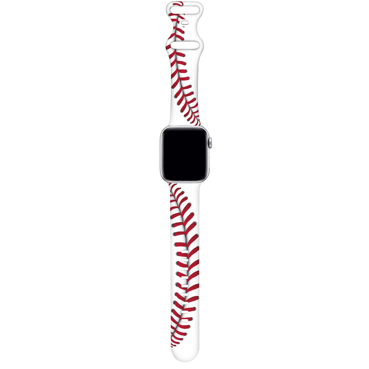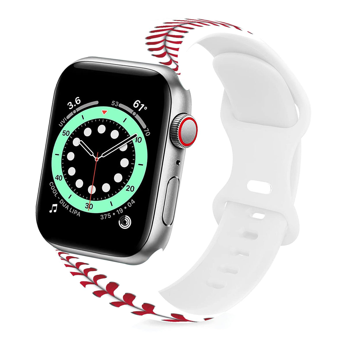 Bacdoilq Baseball Watch Band Red And White Sports Smartwatch Bands Compatible With Watch 42Mm 44Mm 45Mm Soft Silicone Strap Repl