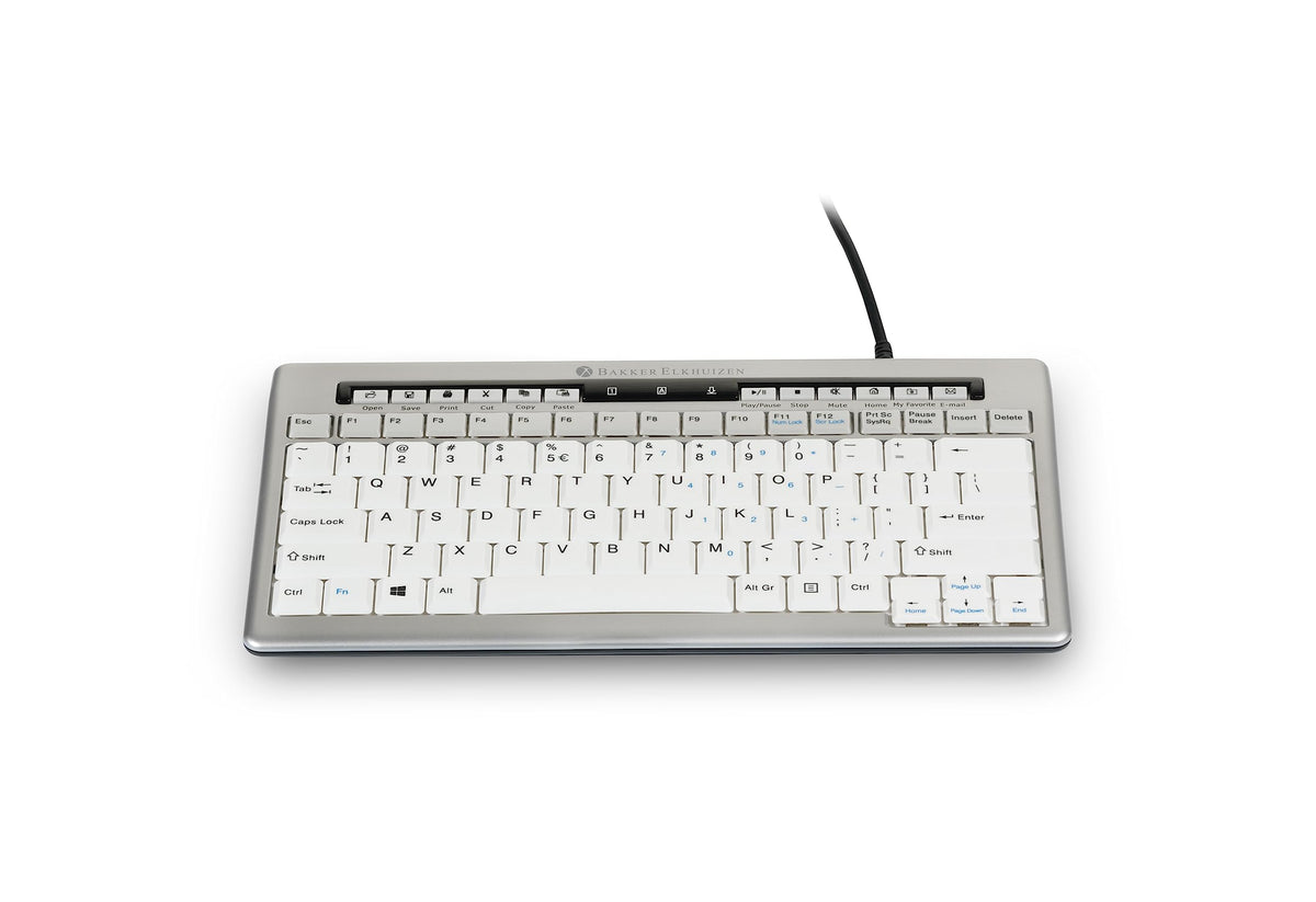Q: What are the key features of the Bakker Elkhuizen S-Board 840 Ergonomic Keyboard?A: The Bakker Elkhuizen S-Board 840 Ergonomic Keyboard features a compact design with a silver finish, making it both stylish and functional. It is designed to promote better posture and reduce strain during typing, with a specific focus on ergonomic comfort.