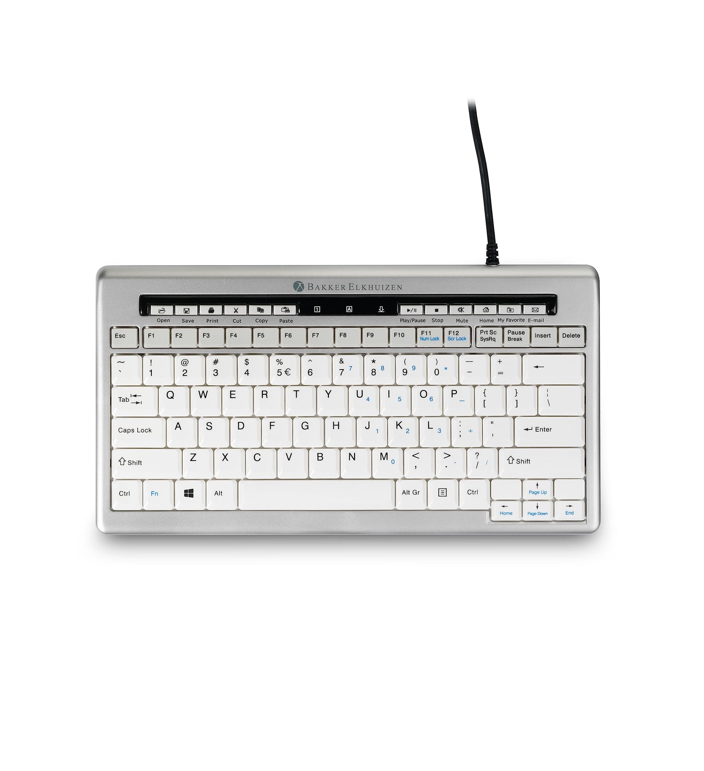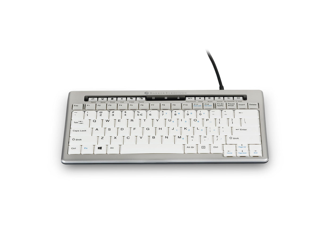 Q: How can I maintain the Bakker Elkhuizen S-Board 840 keyboard to ensure longevity?A: To maintain your Bakker Elkhuizen S-Board 840 keyboard, regularly clean the surface with a soft, damp cloth and avoid using harsh chemicals. Ensure that crumbs or debris do not accumulate under the keys to keep it functioning smoothly.