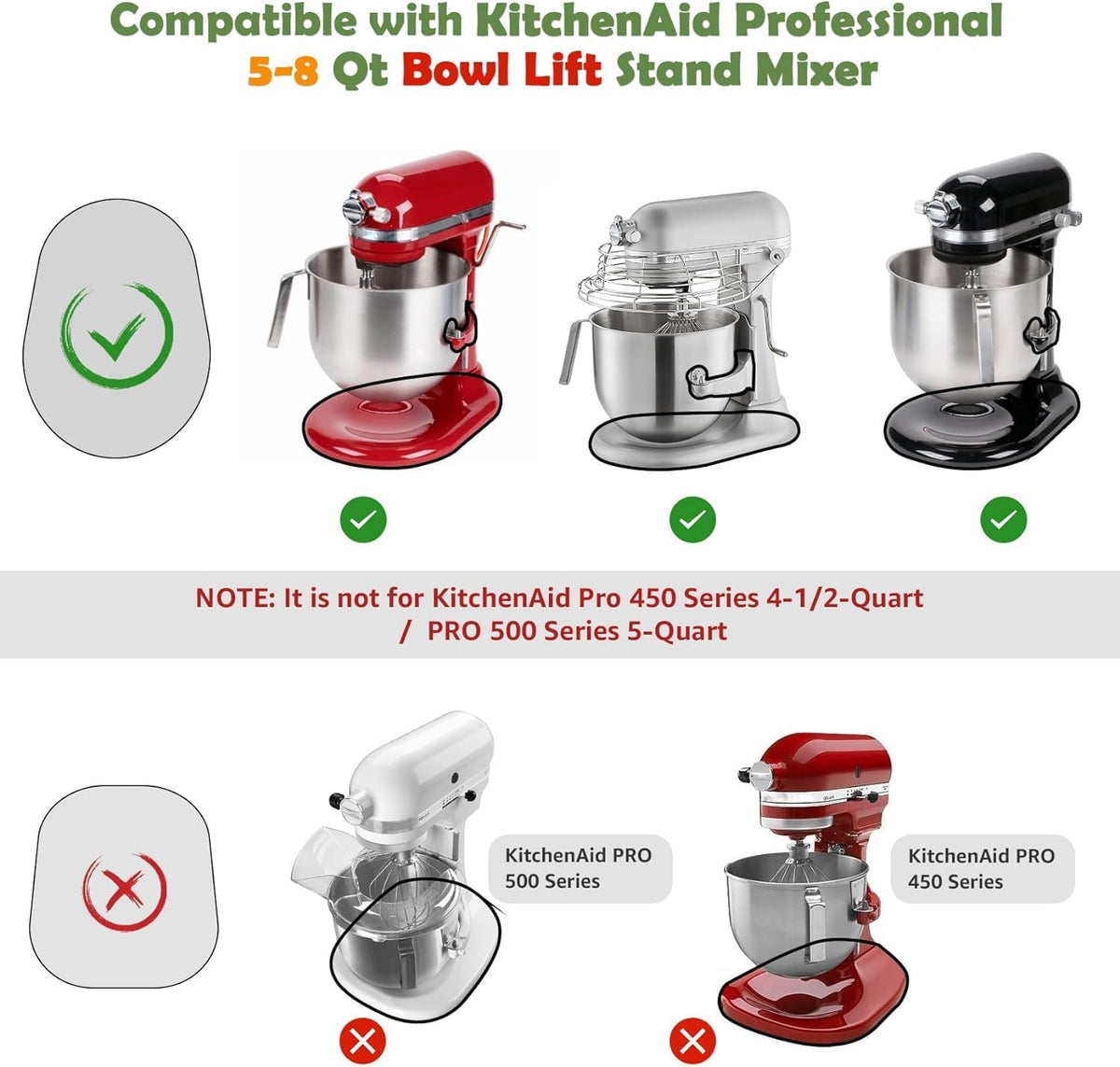 Q: Is the Bamboo Slide Mat compatible with all KitchenAid mixers?A: No, the Bamboo Slide Mat is compatible only with KitchenAid 5-8 Qt Bowl Lift Stand Mixers. It is not suitable for KitchenAid Pro 450 Series or Pro 500 Series models.