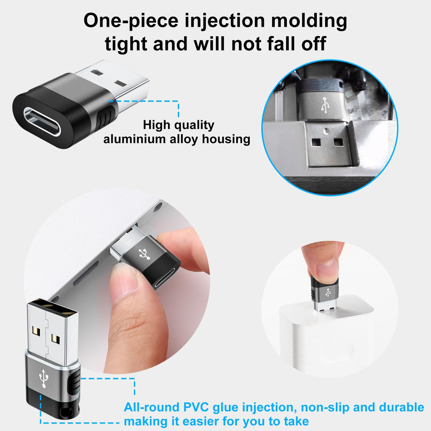 *Usb To Type C Adapter 6 Pack *Suitable For Any Devices With Usb A To Usb C Port This Usb A Male To Usb C Female Adapter Solves The Problem Of Interface Mismatch For You. With This Little Dongle Plugged Into An Available Standard Usb Port, Your Legacy Devices (Charger, Power Bank, Computer) Can Turn Into A Usb-C Enabled Platform; This Usb C Adapter To Usb Enables You To Connect Phones, Tablets, Flash Drives, Mice, Hubs And Other Usb-C Devices To Your Laptops And Chargers With Normal Usb Ports. So You Don'T Have To Waste Money On New Accessories! *Strong Inside & Out The Usb C To Usb Adapter Uses Premium Components And Materials Both Inside And Out To Ensure You Can Plug And Unplug The Adapter Into Your Macbook Pros Usb-A Ports Over 10,000 Times. *Support Data Sync(Otg) & Fast Charging This Usb Male Usb C Female Adapter Offer Usb 2.0 Data Transfer Speed Up To 480 Mbps. Every Usb To C Adapter Has A Built-In 56Ko Resistor Ensure Safety During Charging, Supports A Stable Charging Speed, Up To 5V/3A, 9V/2A. It Is A Good Choice For Your Phones And Tablets. *Usb C Female To Usb A Male Adapter Wide Compatibility The A To C Adapter Compatible With : Standard Usb A Ports Charger, Car Charger/Carplay The Usb C To A Adapter Compatible With : Standard Usb A Ports Computer And Laptop(Before 2015 Macbook / Macbook Pro / Macbook Air) The Usb C Adapter To Usb Compatible With : Iphone 14/14 Plus/14 Pro/14 Pro Max/13/13 Mini/13 Pro/13 Pro Max/12 Pro/12 And More The Usb A To Usb C Adatper Compatible With : Airpods Pro, Airpods 1St 2Nd 3Rd Generation The Otg Adapter Compatible With : Google Pixel 6 5 4 4A 3 3A 2 Xl The Usb Adapter Compatible With Samsung Galaxy S22/S21/S20, Note 20/10 *What You Get 6 Pieces Usb-A To Usb-C Otg Adapter 24*7 Customer Service