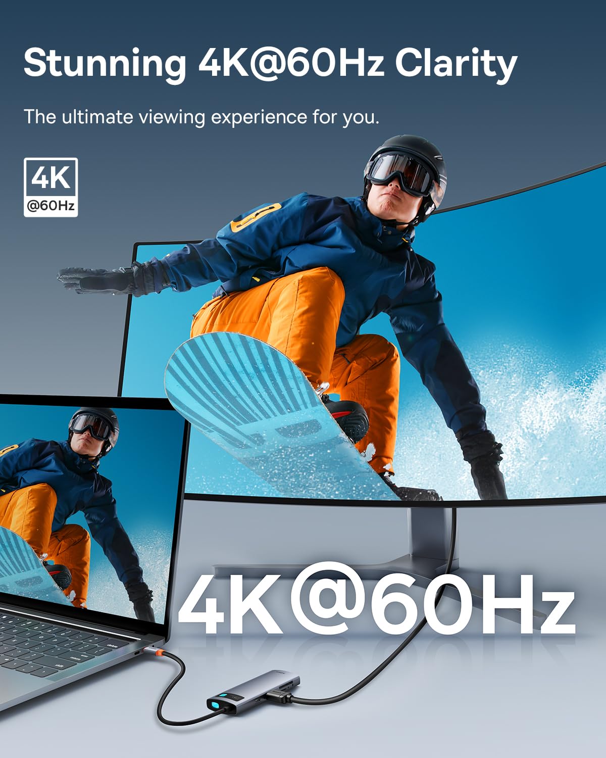Baseus Usb C To Hdmi Adapter, 4K@60Hz Usb C Docking Station, 7 In 1 Usb C Hub With 3 Usb A, Pd 100W, Tf/Sd Card Reader, Usb C Dock Compatible For Iphone 15/Mac/Dell/Acer/Hp/Asus/Steam Deck/Rog Ally